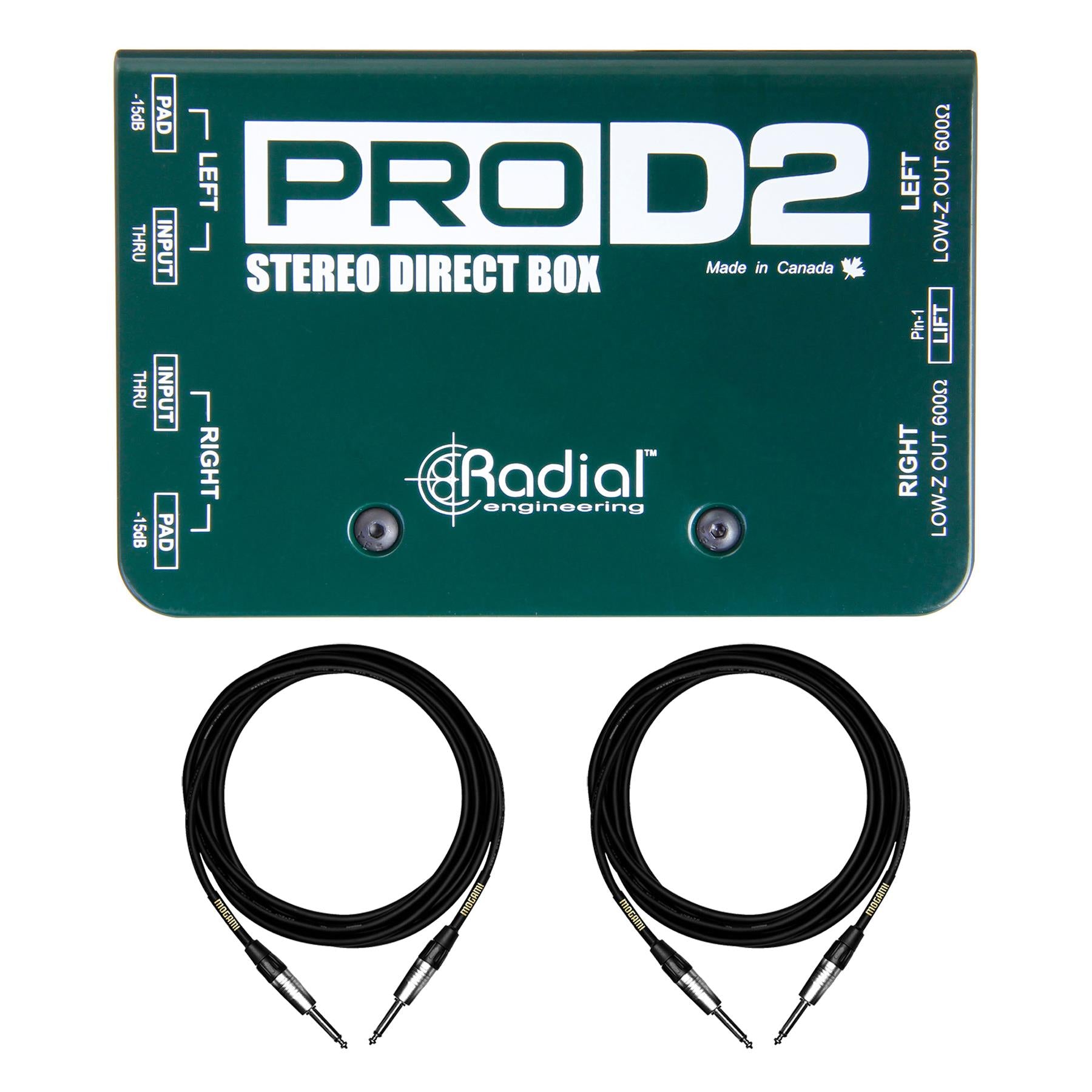 This bundle includes the Radial Engineering ProD2 and two Mogami MCP GT 10 10-foot CorePlus 1/4"; Instrument Cables.