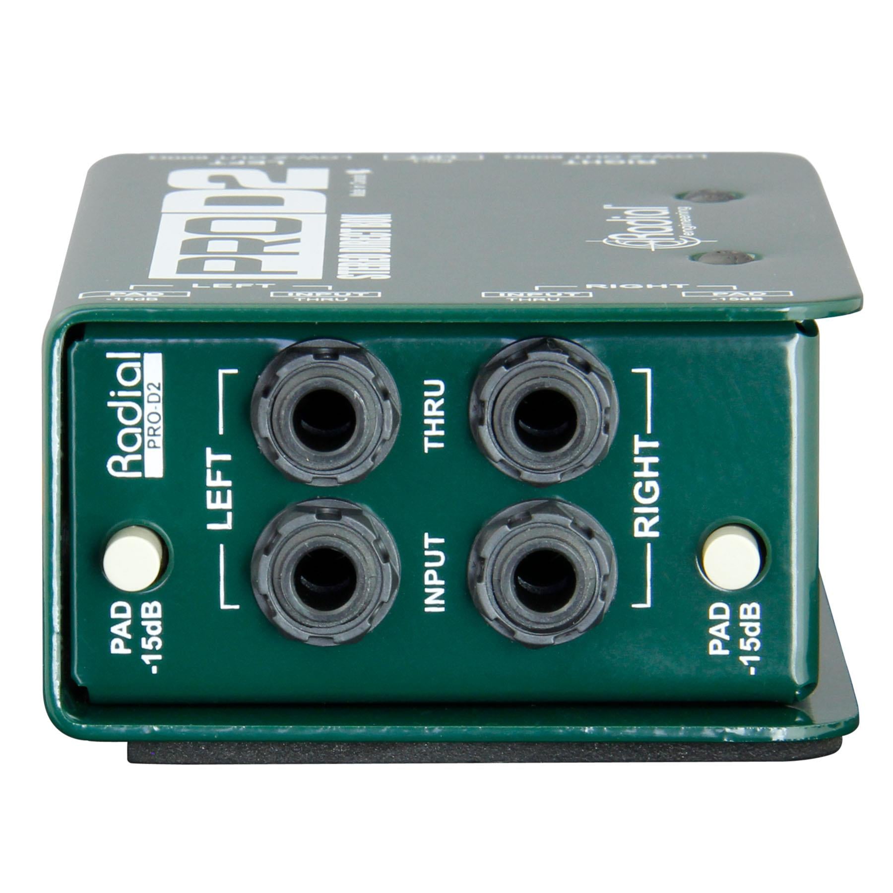 The Radial ProD2 is a compact stereo direct box developed specifically to address the needs and challenges of interfacing a stereo keyboard to a professional audio system. This passive DI features two independent channels with separate inputs and thru-puts for the artist's stage amp and two fully isolated outputs for the PA system.