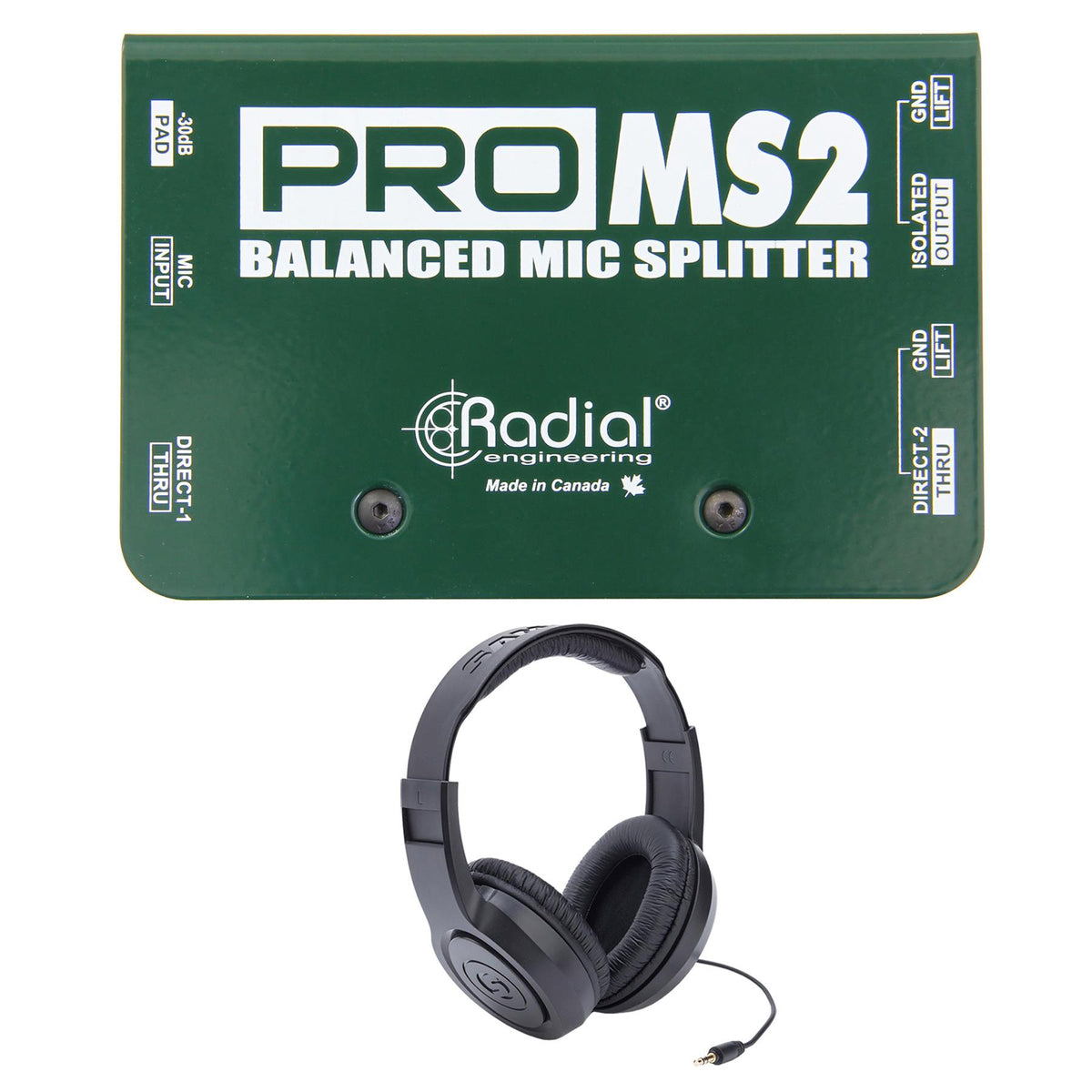 This bundle includes the Radial Engineering ProMS2 Passive Microphone Splitter and a set of Samson SR350 Headphones.