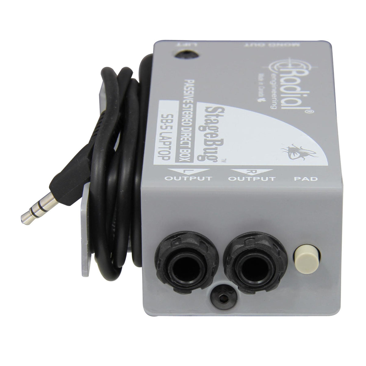 The Radial Stage Bug SB-5 is a compact stereo direct box designed to accommodate laptop computers, tablets and other consumer audio products when amplifying the signal through a PA system.