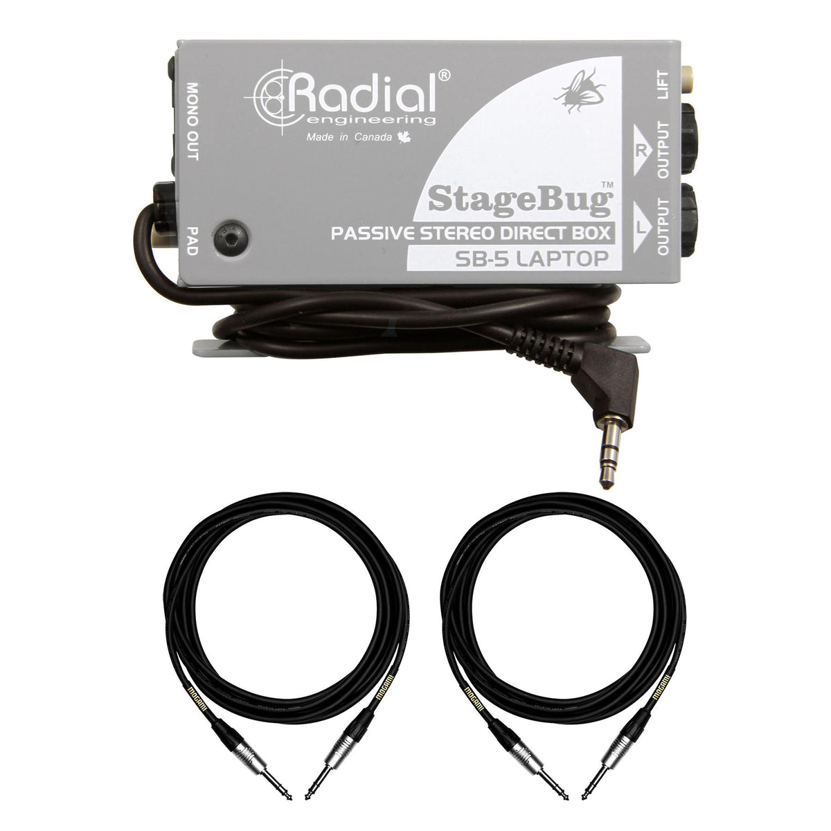 This bundle includes the Radial Engineering StageBug SB-5 Laptop DI and two Mogami MCP SS 05 CorePlus 5 Foot 1/4" TRS Cables.