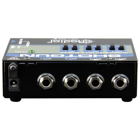 The Shotgun™ is a compact guitar-level signal buffer designed to drive up to four amplifiers simultaneously and fit nicely on any pedalboard. It features two inputs with a switching jack on input-2 that - when connected - changes the architecture from a 1x4 mono distribution system to a 2x2 stereo setup. The Shotgun is equipped with CLC™ – Radial's unique Consistent Load Compensation circuit that retains a stable input impedance to ensure the character of the signal remains unchanged, no matter if you use one or two sources.