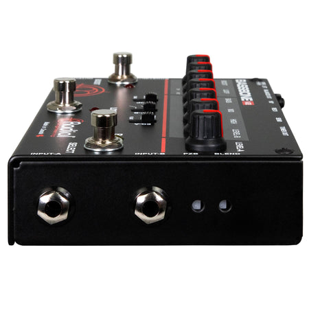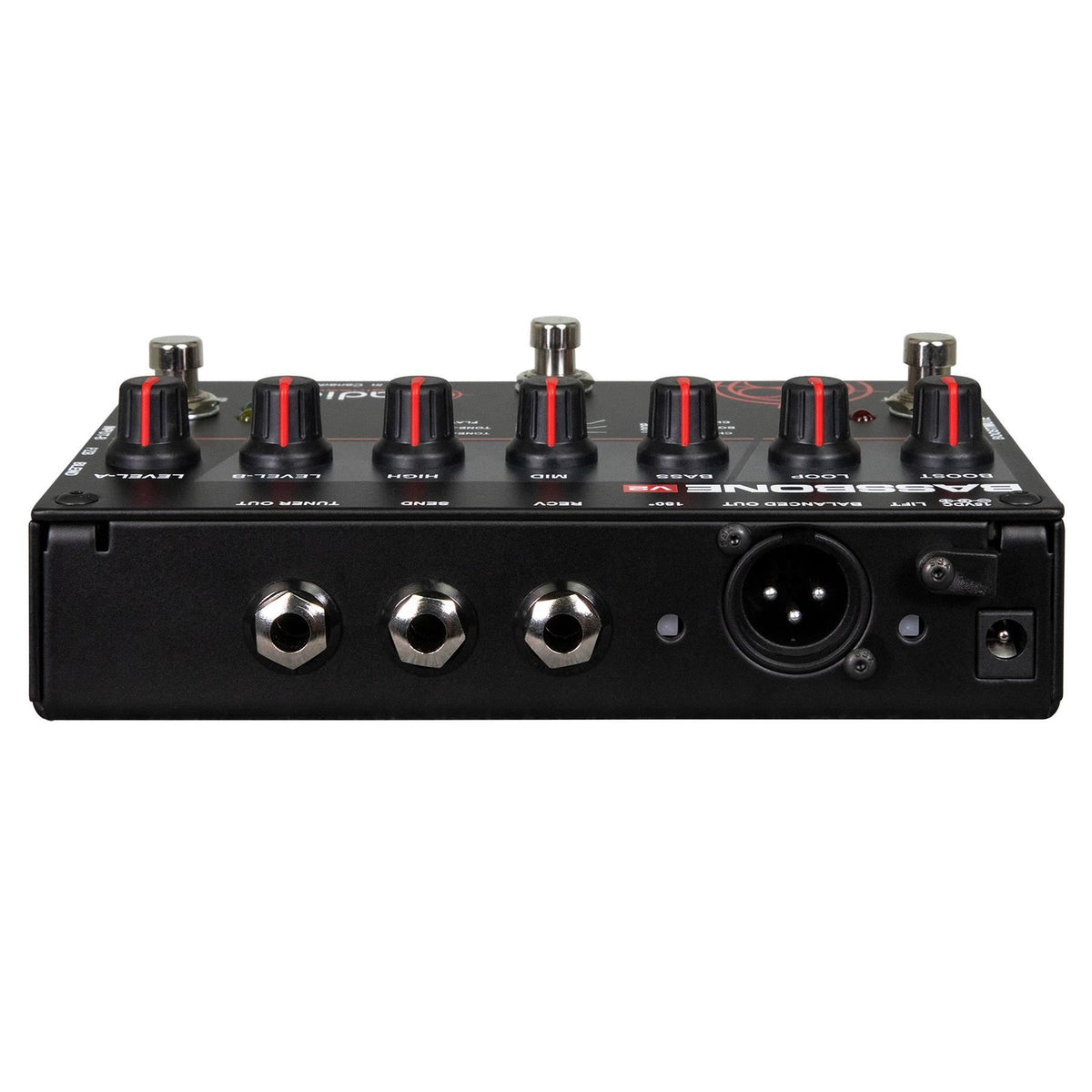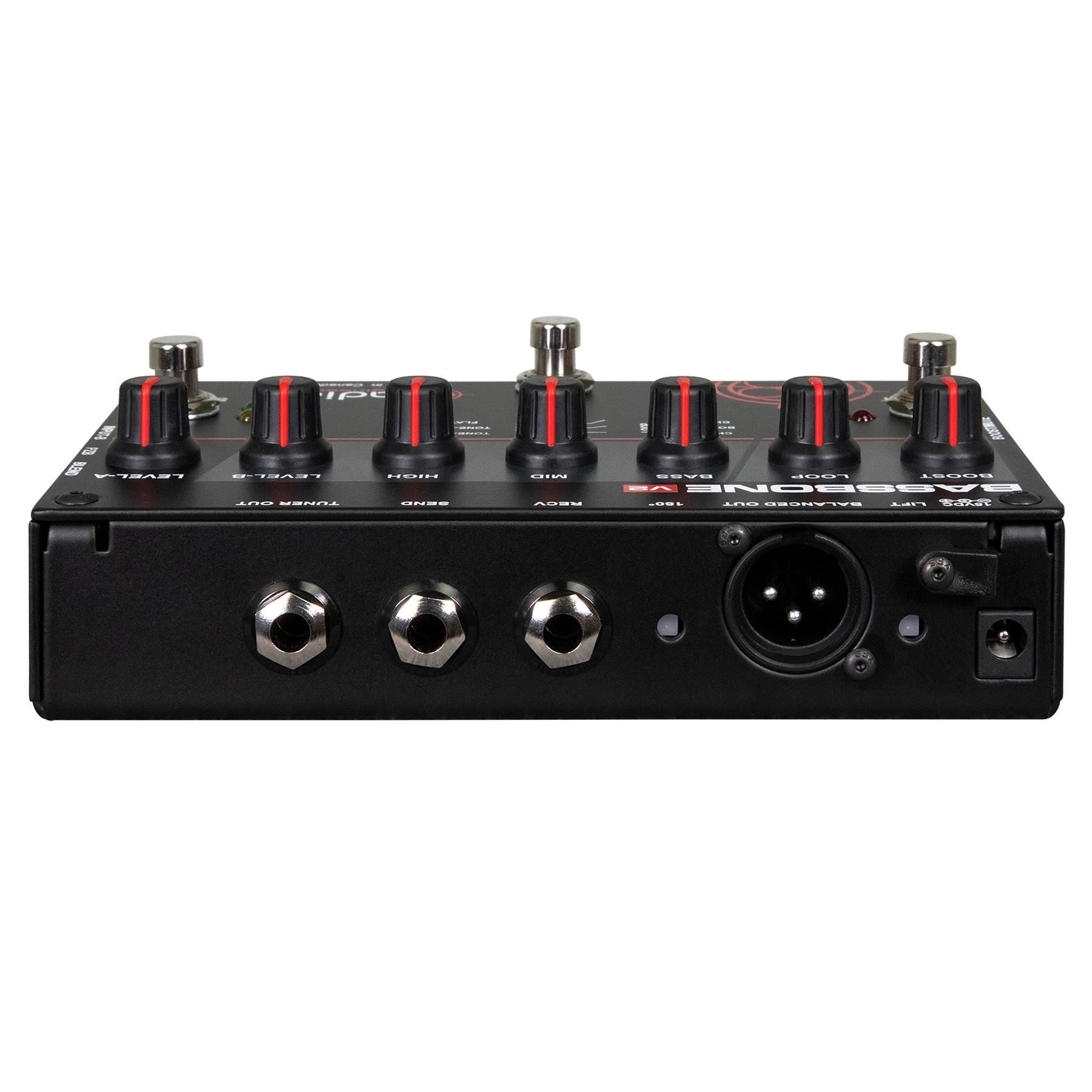 Simply stated, the Bassbone V2 is a bass command center. Connect any two basses and seamlessly toggle between them using a footswitch. Each channel has a separate level control to balance the two instruments and is augmented with a unique EQ that enables you to adjust the tone to match your bass amp. In fact, the passive-interactive EQ is so powerful, you can toggle between channels to emulate switching from a P-Bass to a Rickey using the same bass! A special PZB booster adds yet another dimension - allowing you to connect a piezo, such as used on an upright bass when doubling.