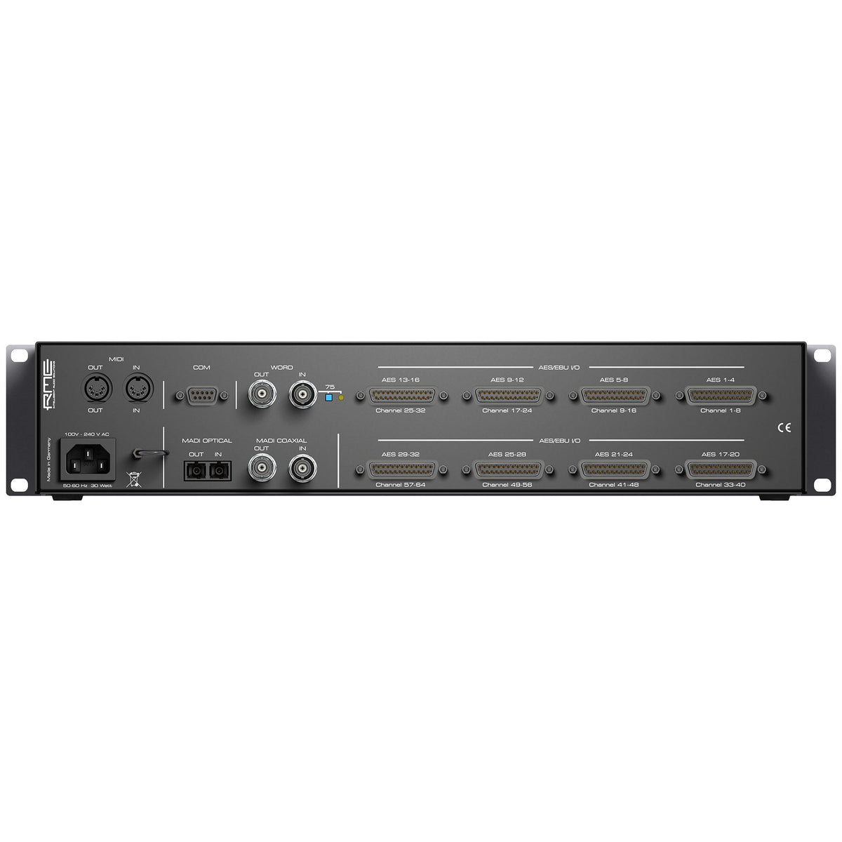 The ADI-6432 converts all 64 channels of a single MADI stream to 32 AES/EBU ports and vice versa. Thus it supports all 64 channels of the MADI format at up to 48 kHz, 32 channels at up to 96 kHz and 16 channels at up to 192 kHz. Connected to the HDSP(e) MADI interface, the ADI-6432 turns into a powerful external 32-port AES/EBU interface. Two units will build a perfect digital multicore solution without any computer needed.
