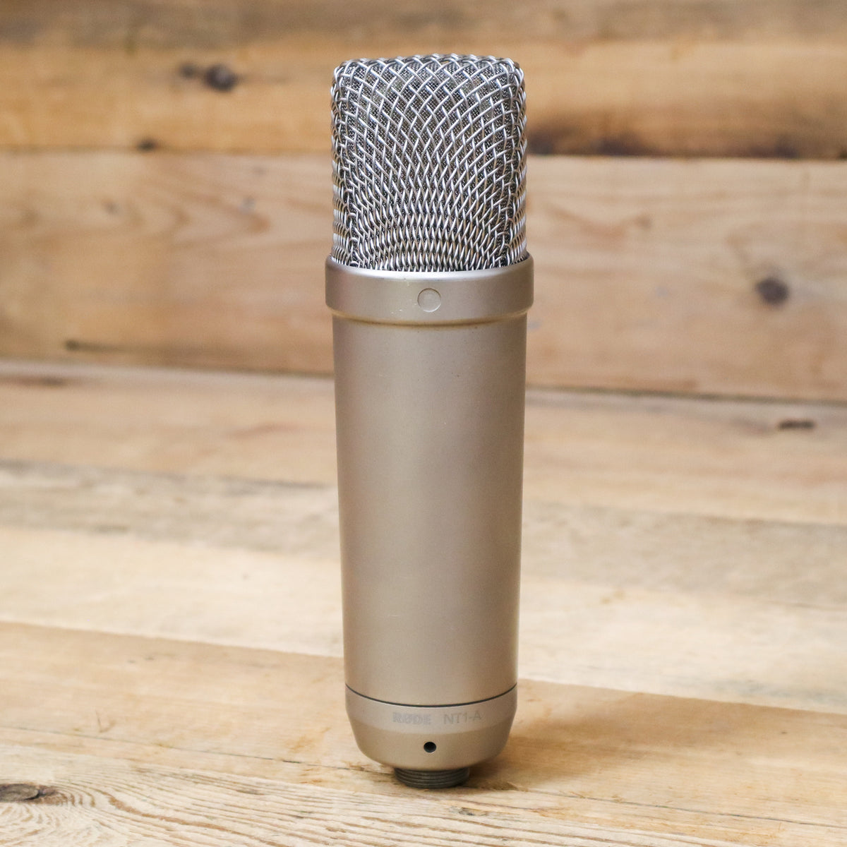 This used Rode NT1A Studio Condenser Microphone comes with a Shock Mount.