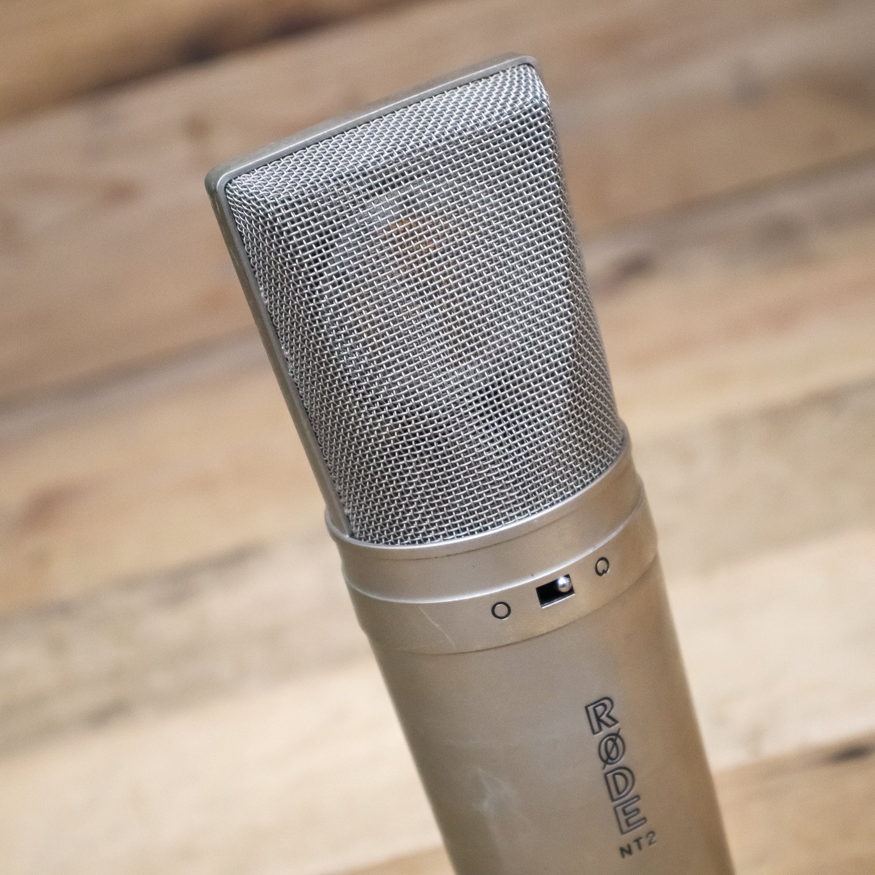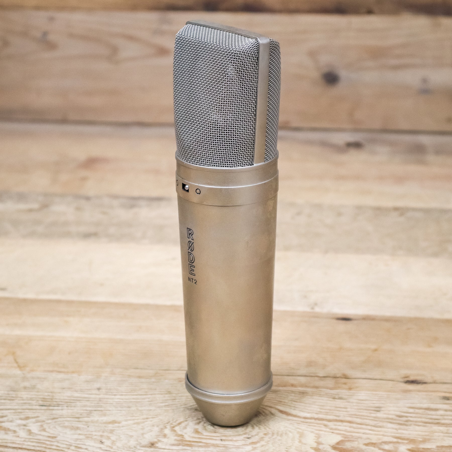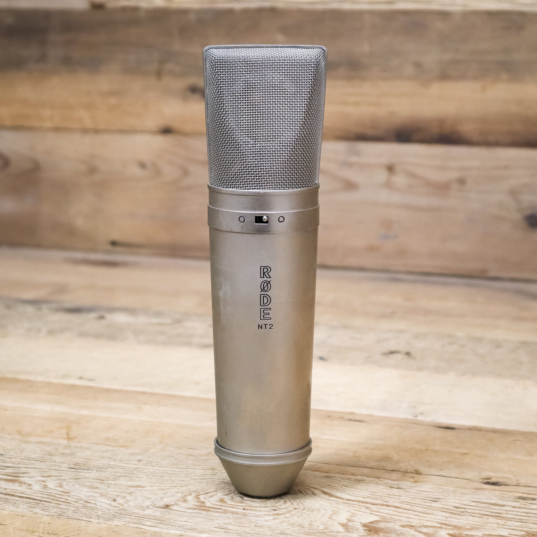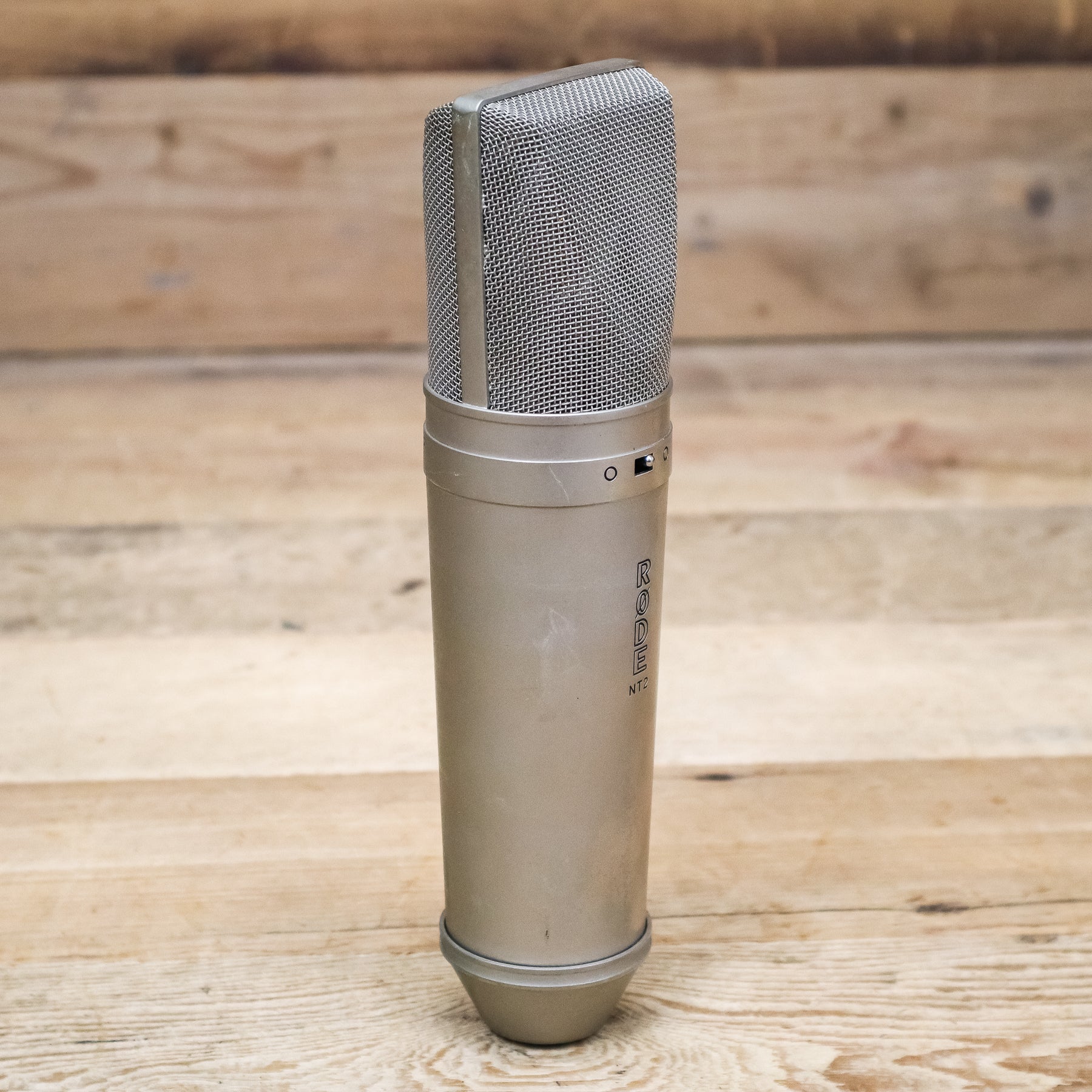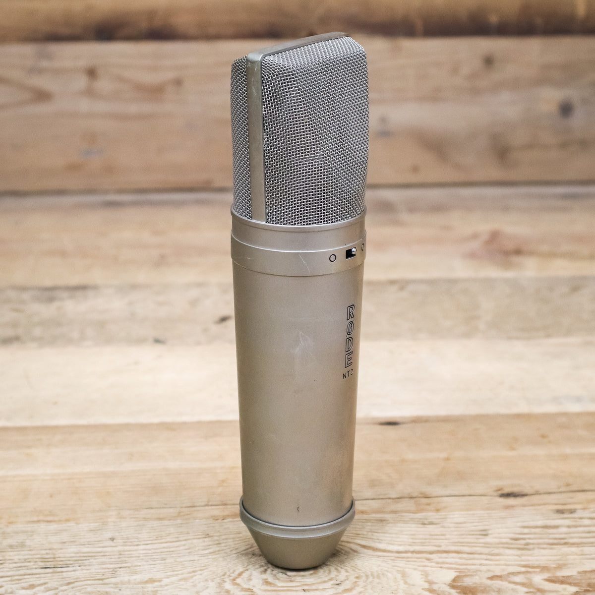 This used Rode NT2 Studio Condenser Microphone comes with a Shock Mount.