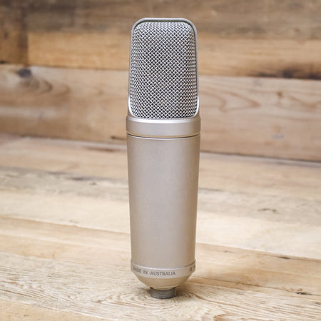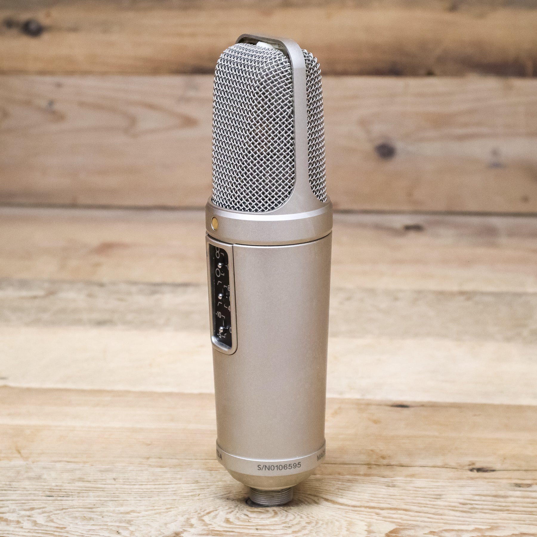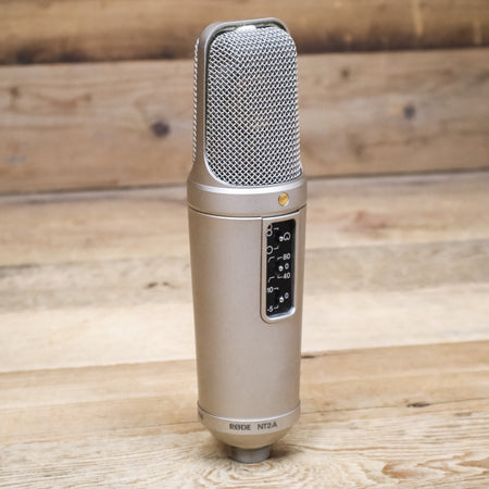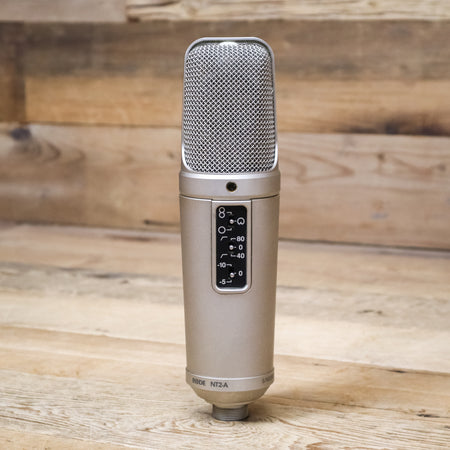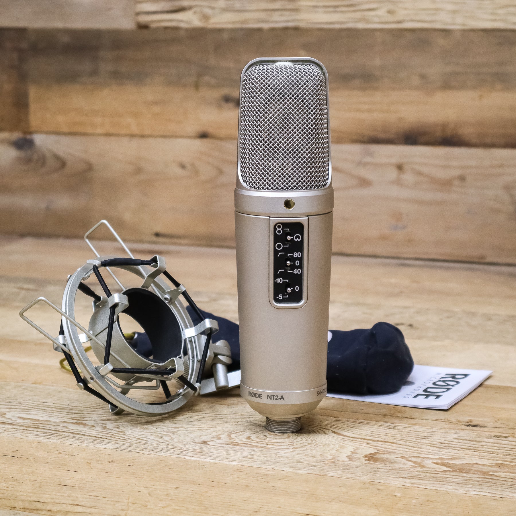 This used Rode NT2A Studio Condenser Microphone comes with a Shock Mount, Cover, and the Manual..