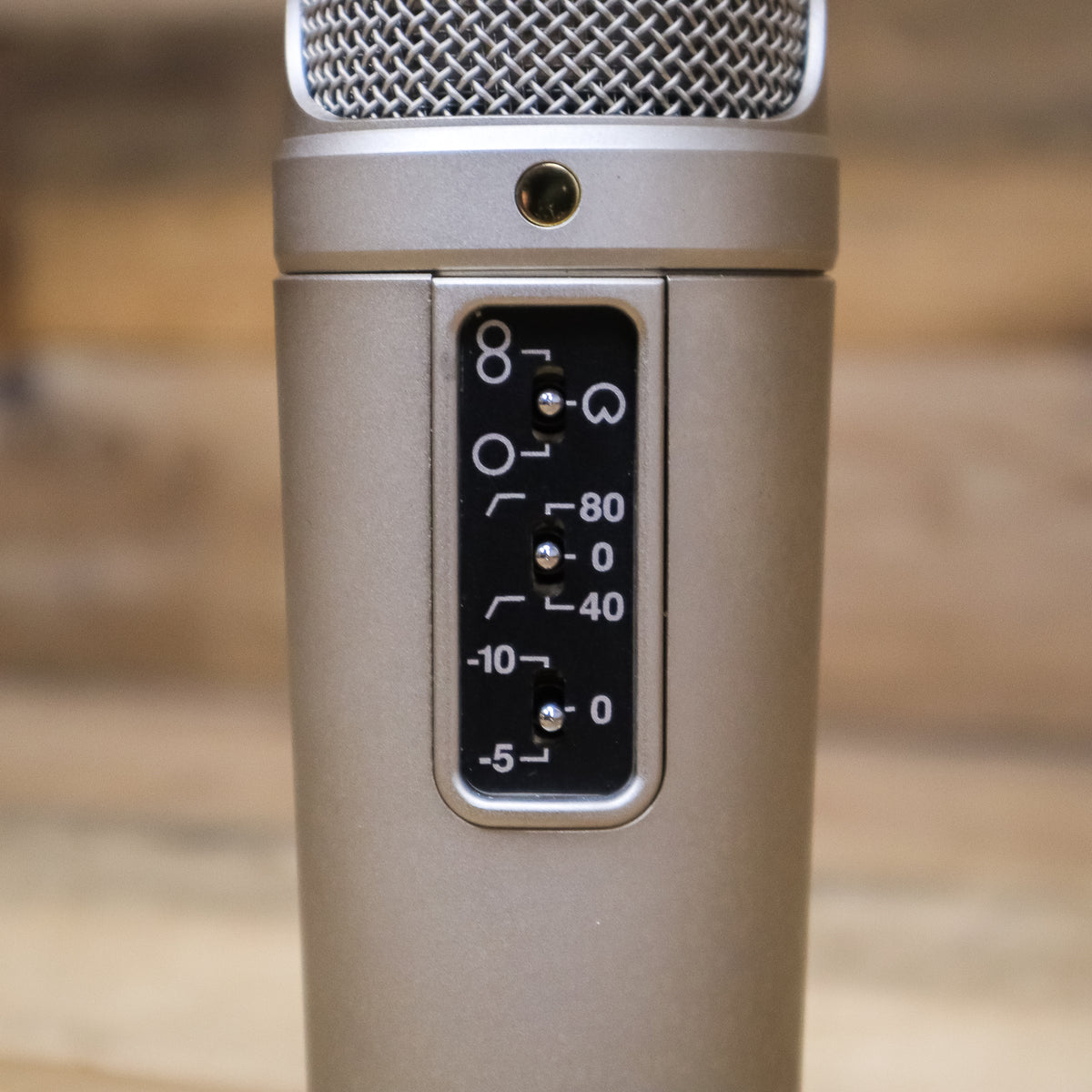 The NT2-A is a professional large capsule (1-inch) condenser studio microphone with variable pick-up pattern, variable high pass filter and variable pad. These features provide greater creative control and versatility. Three 3-position switches located on the mic body provide the freedom to step from Figure 8, Cardioid or Omni polar pick-up patterns; from a flat response to either 80 Hz or 40 Hz high-pass filter and a Pad adjustment of 0 dB, -5 dB or -10 dB attenuation.