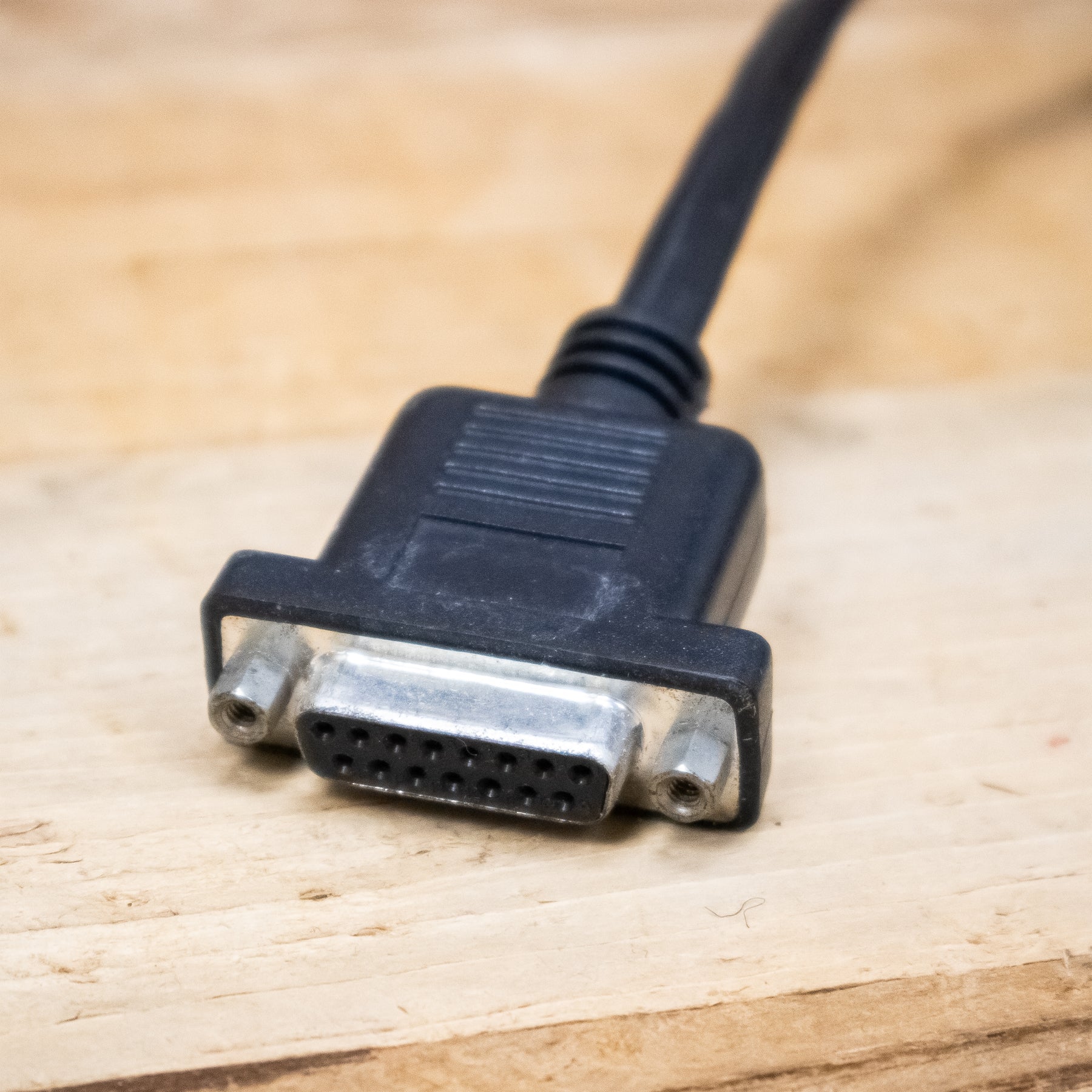 The 5 Pin DIN to DB15 MIDI Cable Harness Assembly is used to connect MIDI-compatible musical instruments (like synthesizers, drum machines, or keyboards) to equipment that uses a DB15 interface, typically older sound cards, breakout boxes, or specialized studio gear.