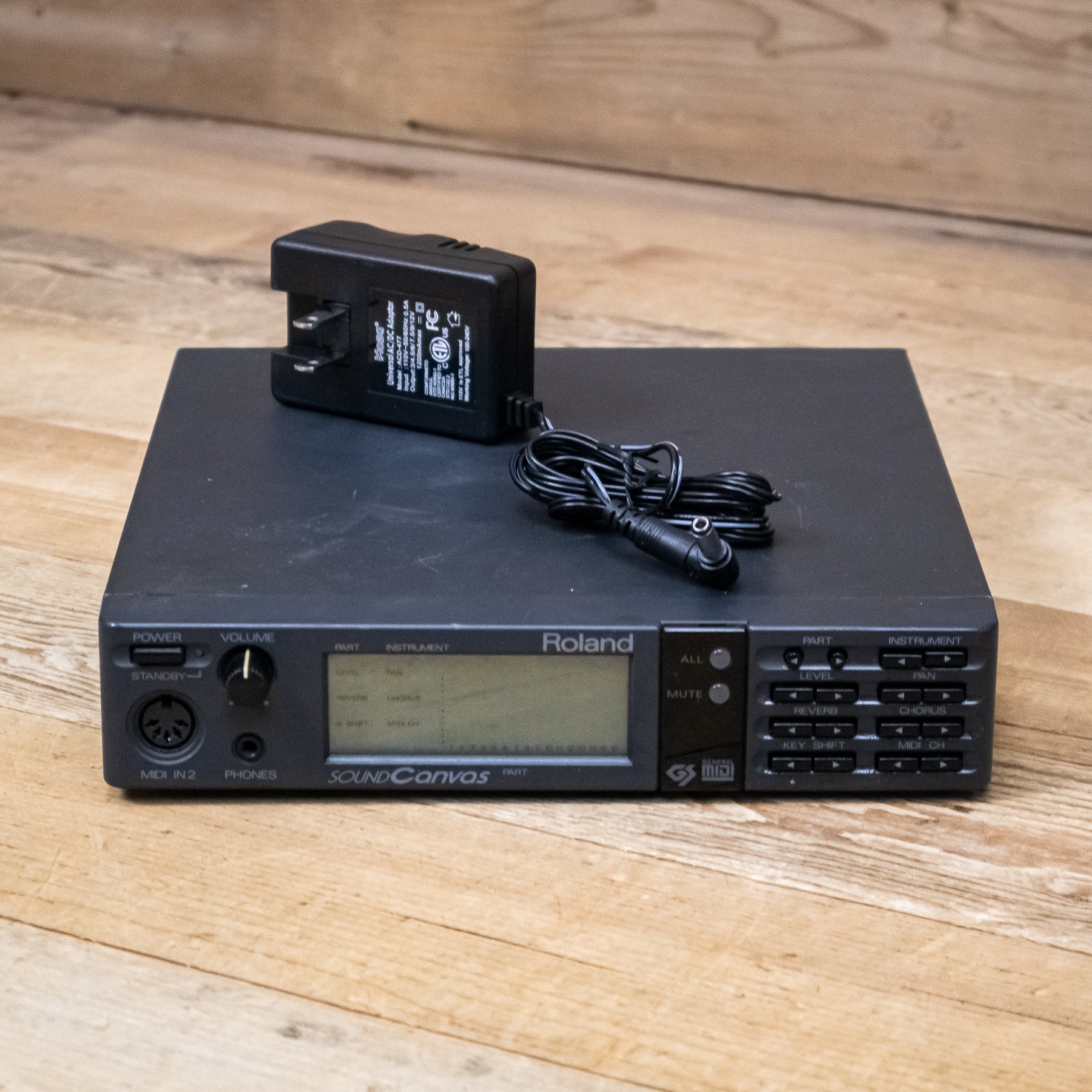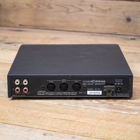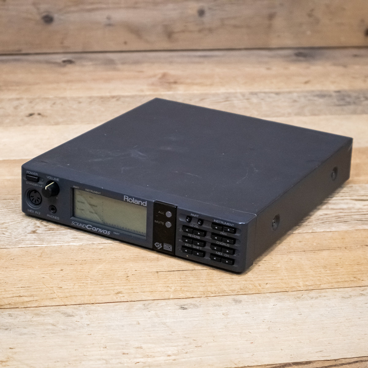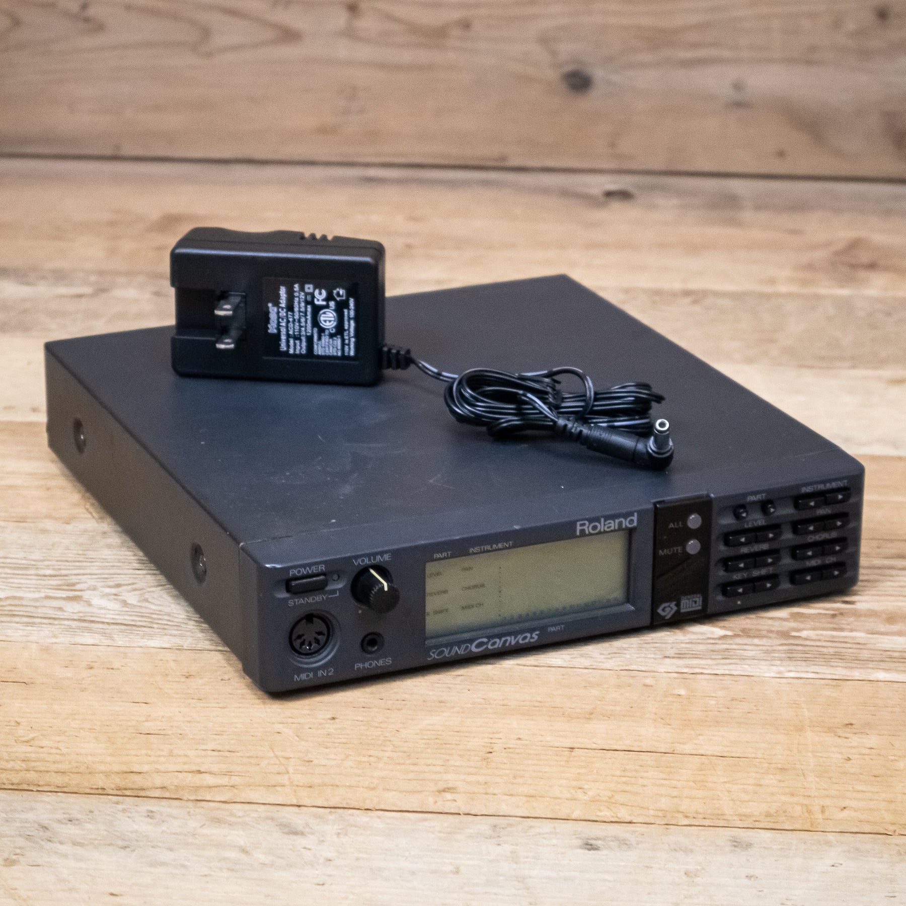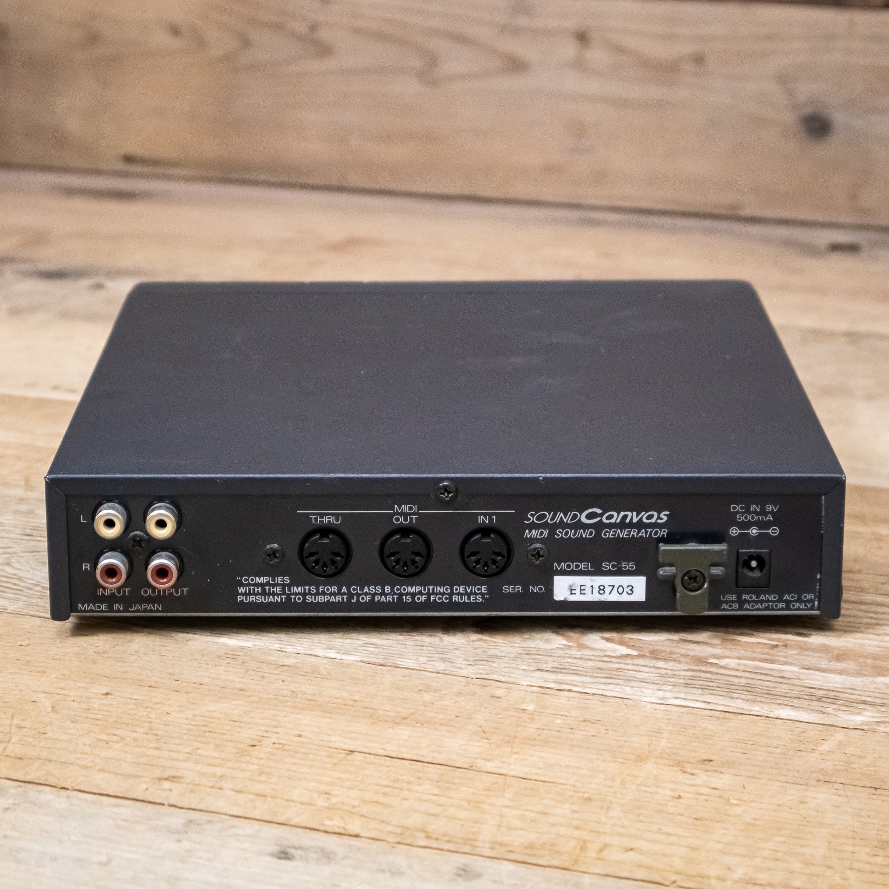 The SC-55 Sound Canvas is a MIDI Sound Module that contains a wide variety of high quality sounds. The SC-55 supports 24-voice polyphony with 16-part multi-timbrality, and comes pre-loaded with the Roland MT-32's variation bank (without the reprogrammability, and features 317 instrument patches including GS drum kits and additional controllers. The SC-55 also provides reverb and chorus effects for added variety and usability.