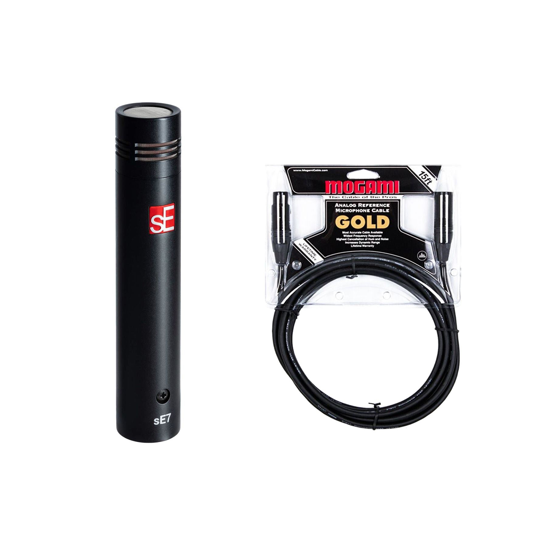 This bundle includes the sE Electronics SE7 Small Diaphragm Cardioid Condenser Microphone and a 15-foot Mogami Gold Studio XLR Cable.