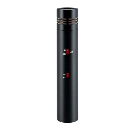 Compact small diaphragm condenser mic. Switchable pre-attenuation pad (-20db) and low cut filter (80hz). Gold Plated XLR Connecter.