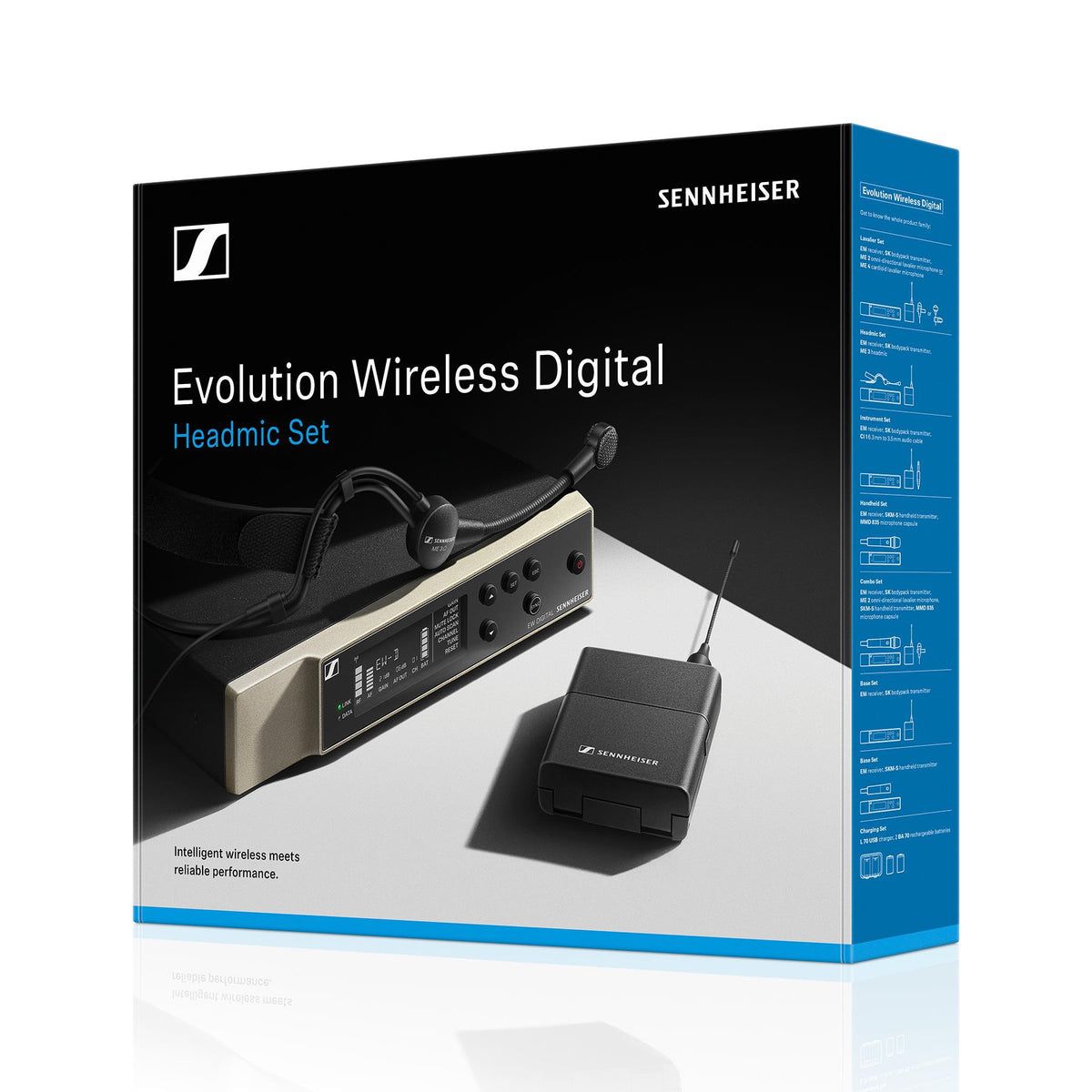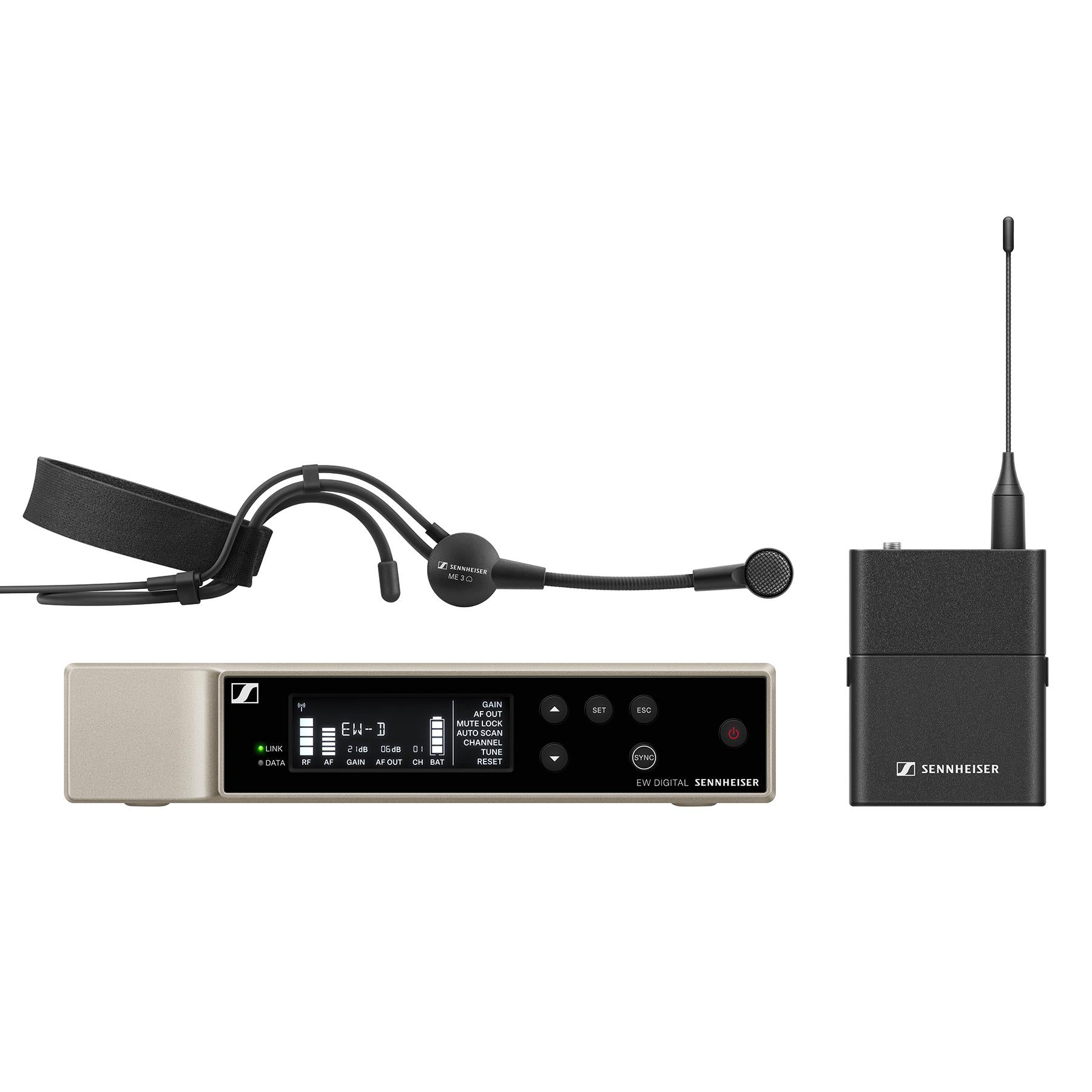 Digital wireless headmic set. Includes (1) EW-D EM single channel receiver, (1) EW-D SK bodypack transmitter, (1) new ME 3 headmic (cardioid, condenser), (1) NT 12-5 CW+ power supply with country adapters, (1) rack mount kit and AA batteries, frequency range: Q1-6 (470.2 - 526 MHz)