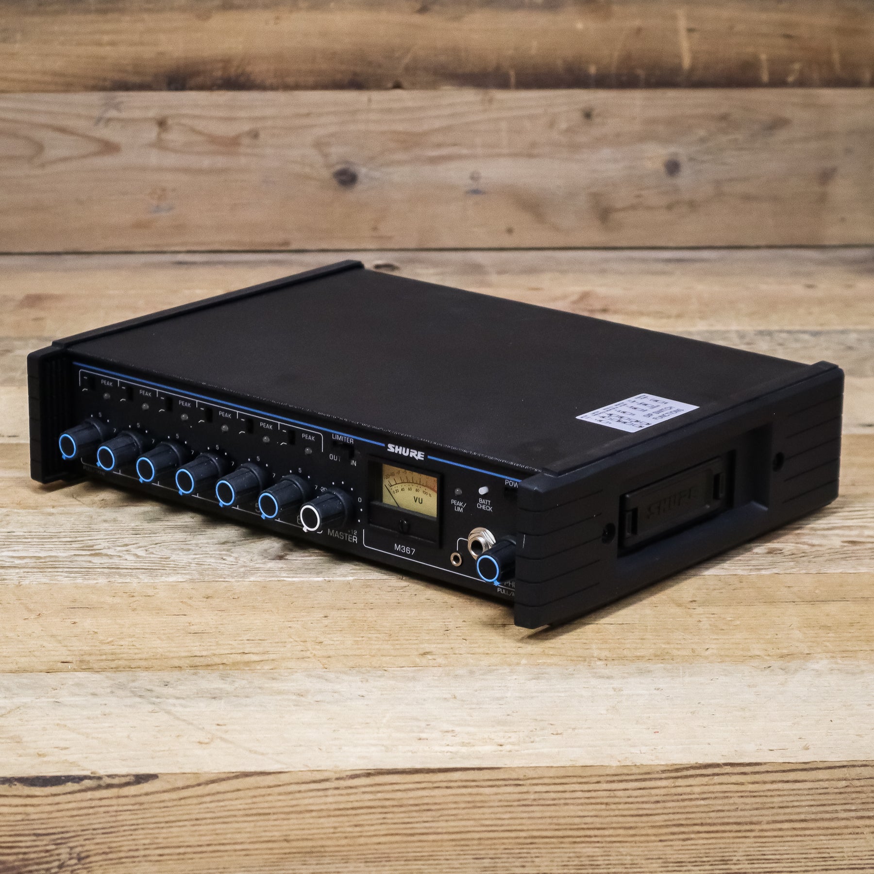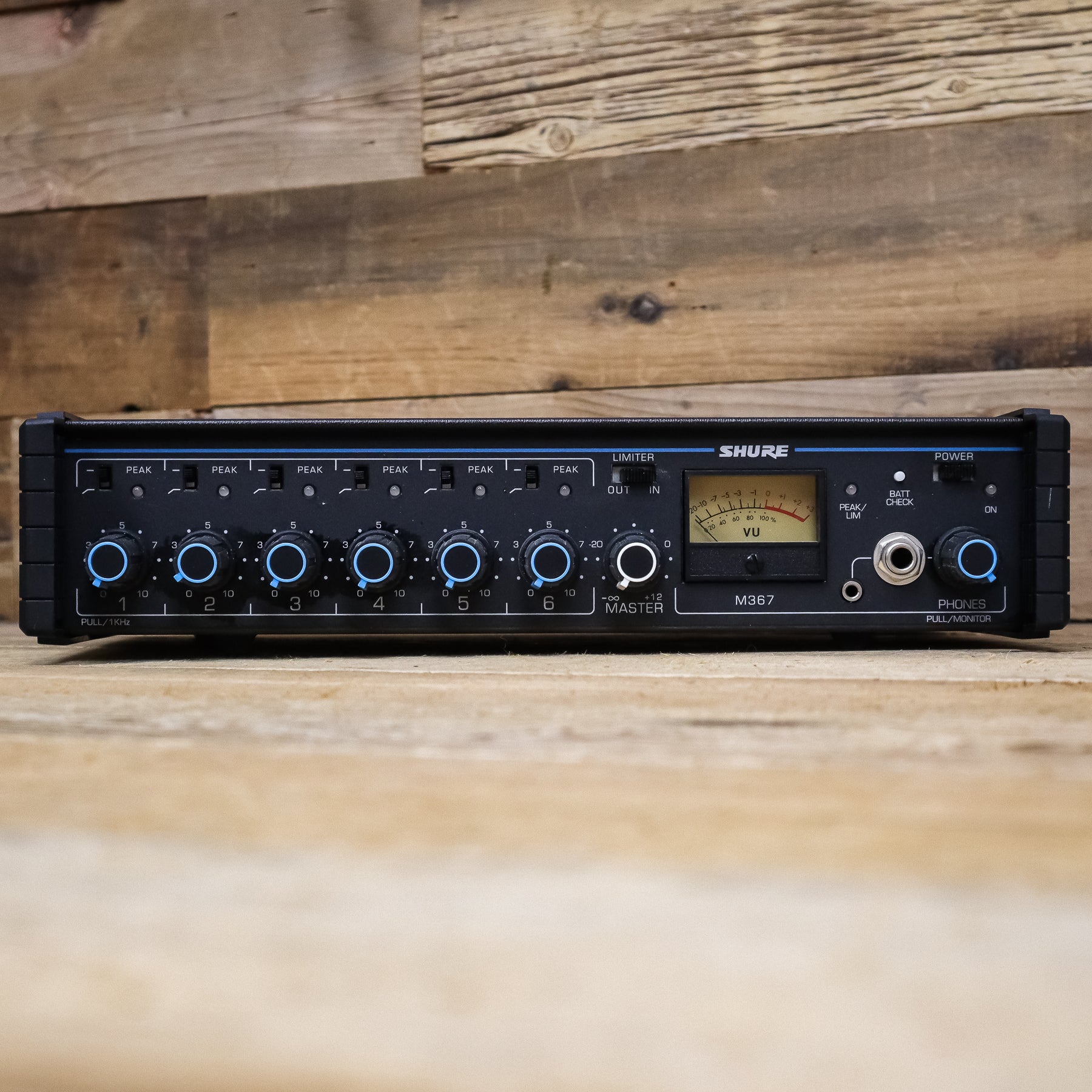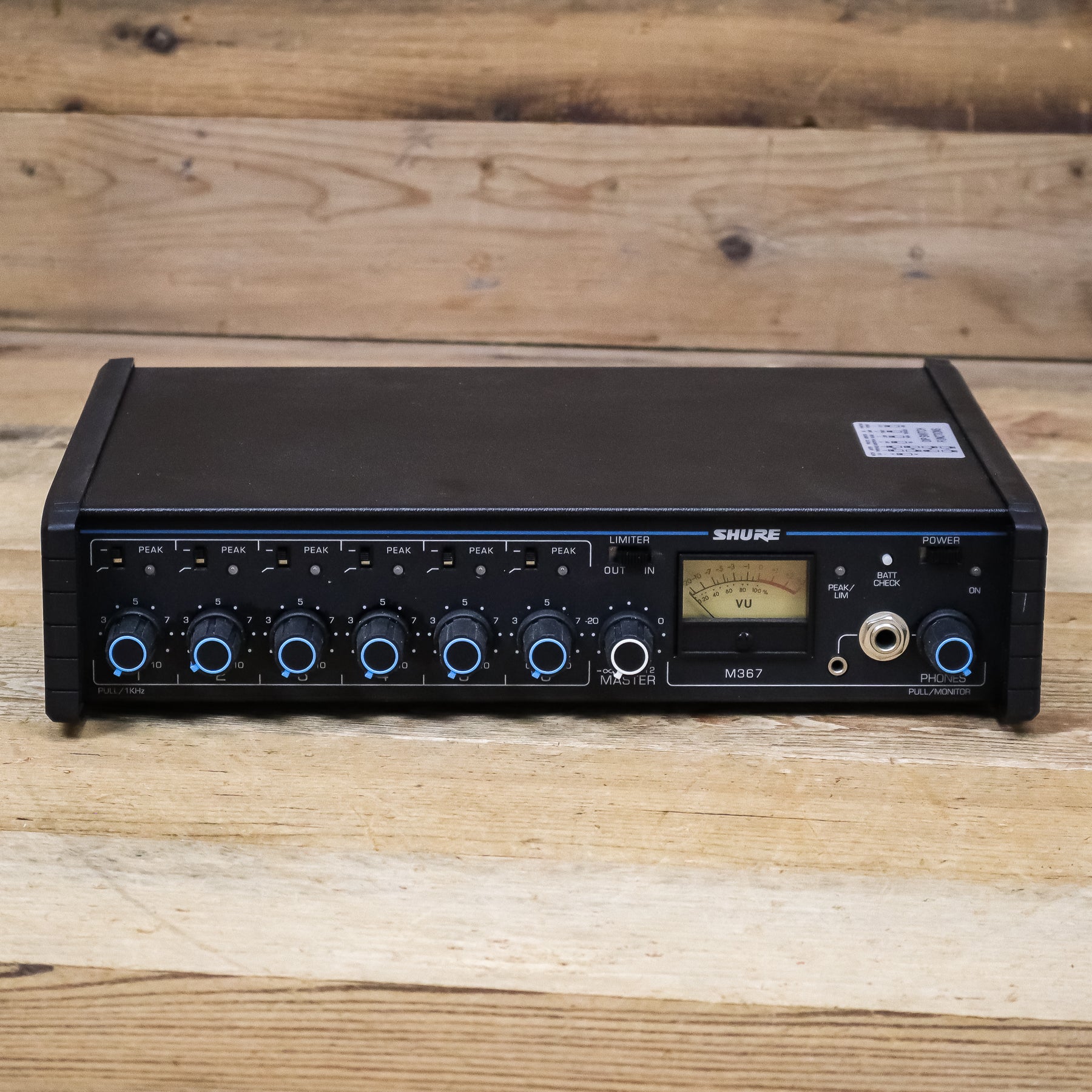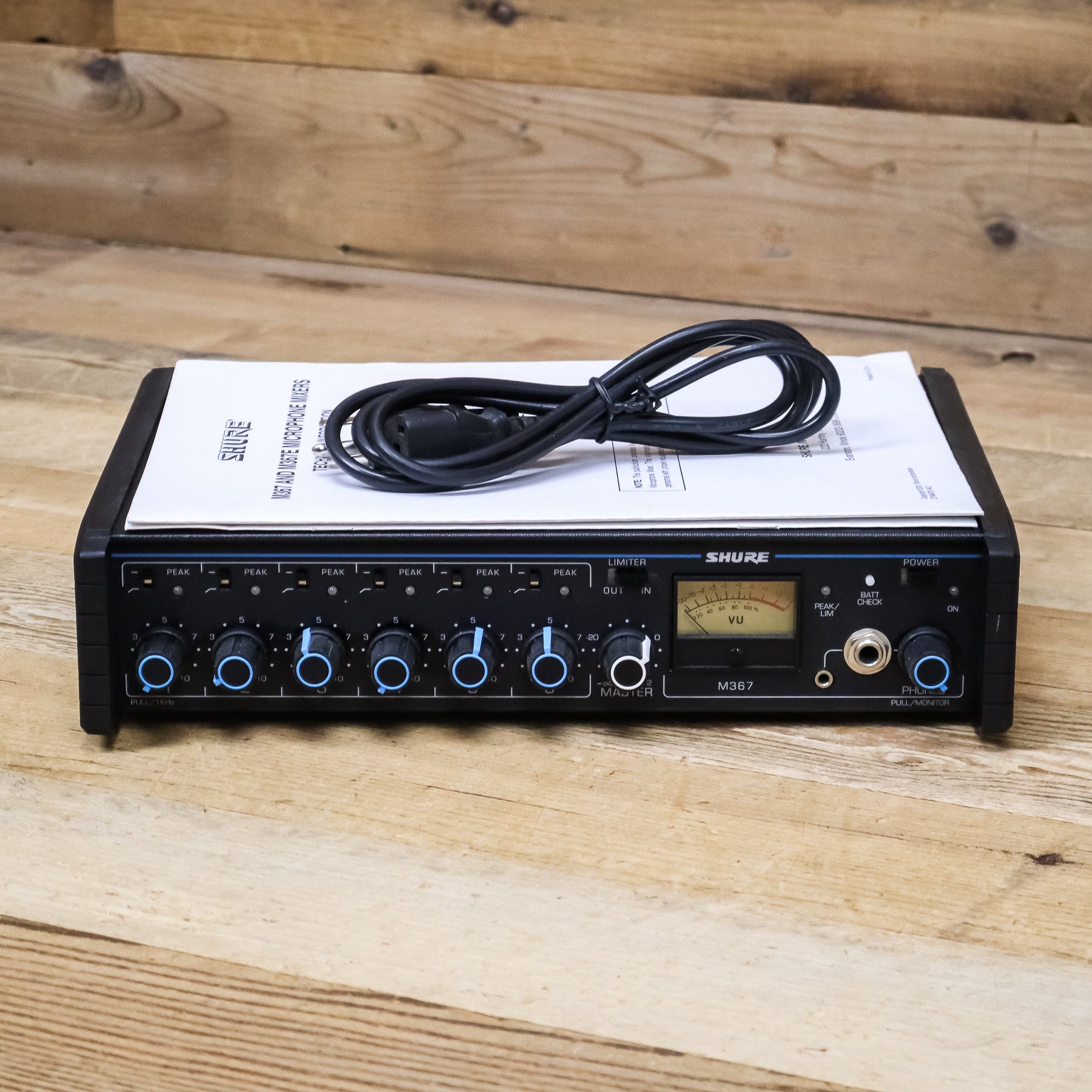 This used Shure M367 6-Channel Mic Mixer comes with the Manual and a Power Cable.