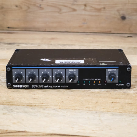 The Shure SCM268 4-Channel Microphone Mixer offers simplicity and routing flexibility in a convenient, compact, and rugged enclosure. The SCM268 features 4 high quality transformer-balanced XLR inputs and mic/line level switchable XLR output. Transformer balanced I/O provides maximum audio gain, minimizing hum and line noise.