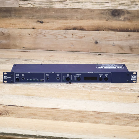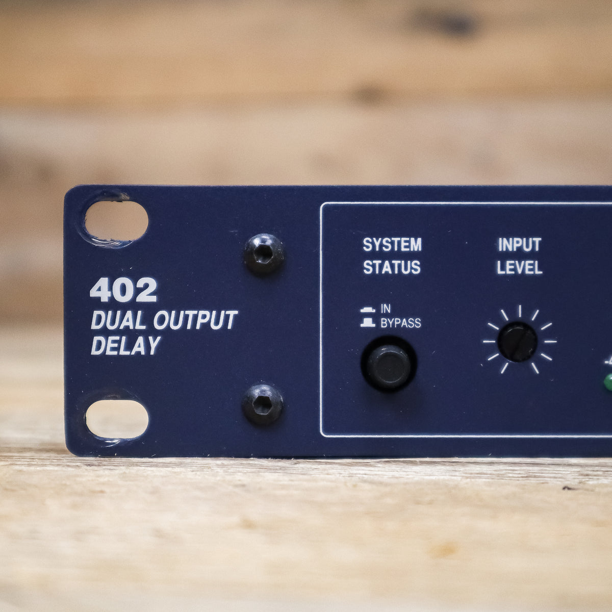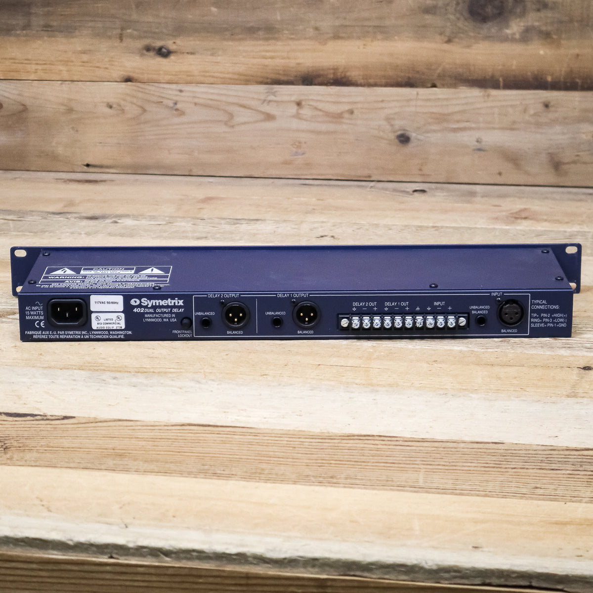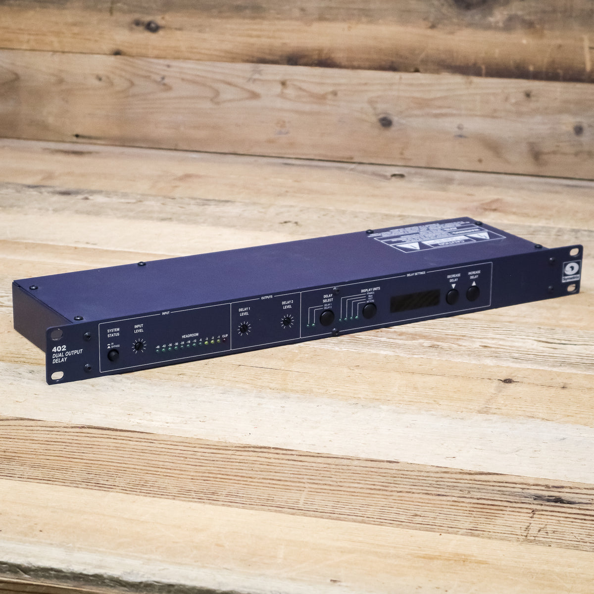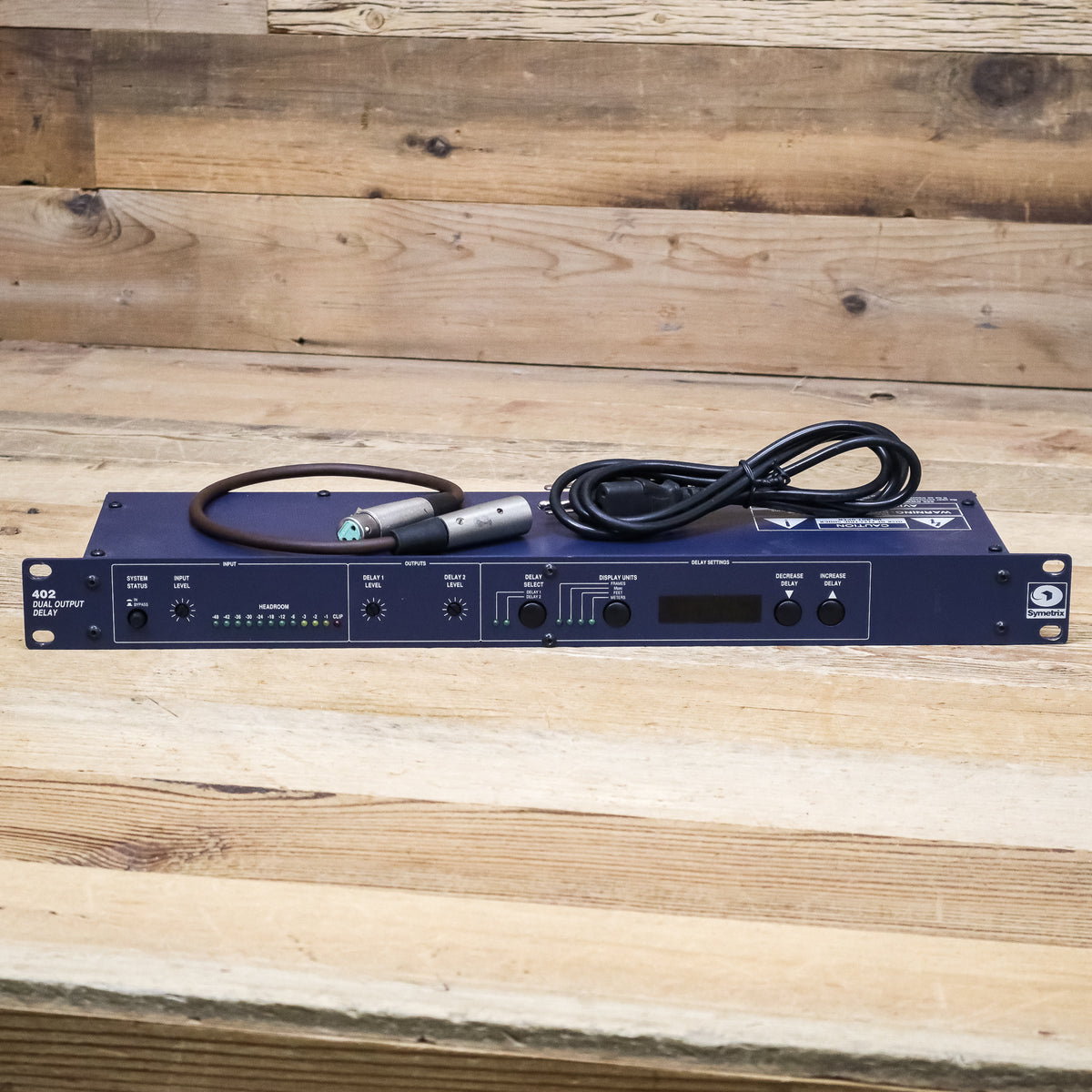 The Symetrix 402 is a single-input, dual-output digital delay intended for use in sound systems, video production, and other applications requiring a high-quality digital signal delay. The 402 uses oversampling 20-bit A/D and D/A converters to achieve recording-studio signal quality in an affordable package.
