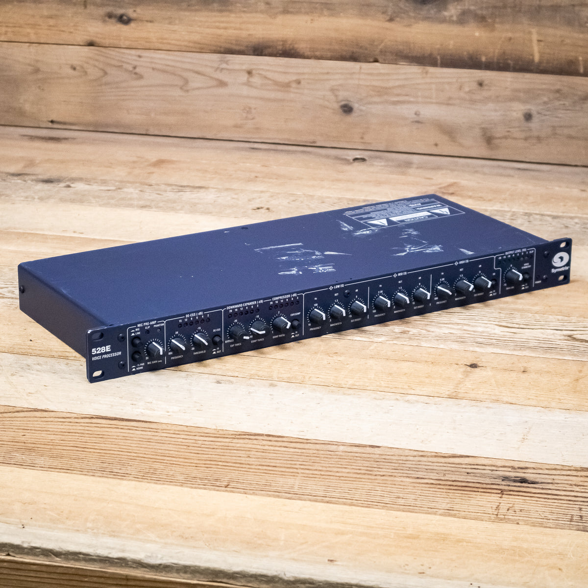 The 528E is a complete, self-contained voice processor, that performs six separate functions. In addition to a microphone preamp, the unit performs de-essing, compression/limiting (with sidechain input), downward expansion, voice symmetry alignment and the signal can be sculpted with parametric EQ. All six processors may be used simultaneously, and although the unit is referred to as a "voice processor" it is perfectly suitable for any signal.