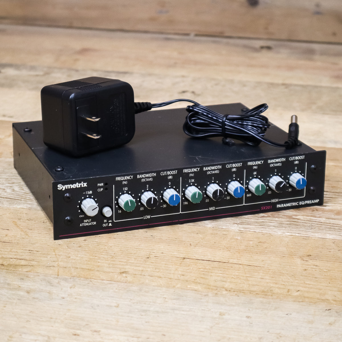 This used Symetrix SX201 EQ/Preamp comes with a Power Adapter.