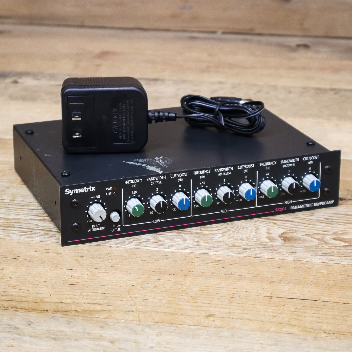 This used Symetrix SX201 EQ/Preamp comes with a Power Adapter.
