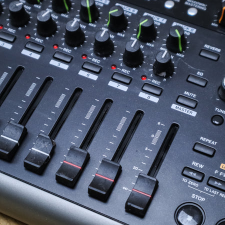 Each track has its own send to a stereo reverb processor as well as two-band shelving EQ. Once you've perfected your mix with the 45mm faders, pan knobs, reverb and EQ, record it to the dedicated stereo master track. Your mix can be processed with mastering effects like EQ and limiting for a tight, modern sound. When you're satisfied, transfer your mix to a computer over USB 2.0 or burn an audio CD.