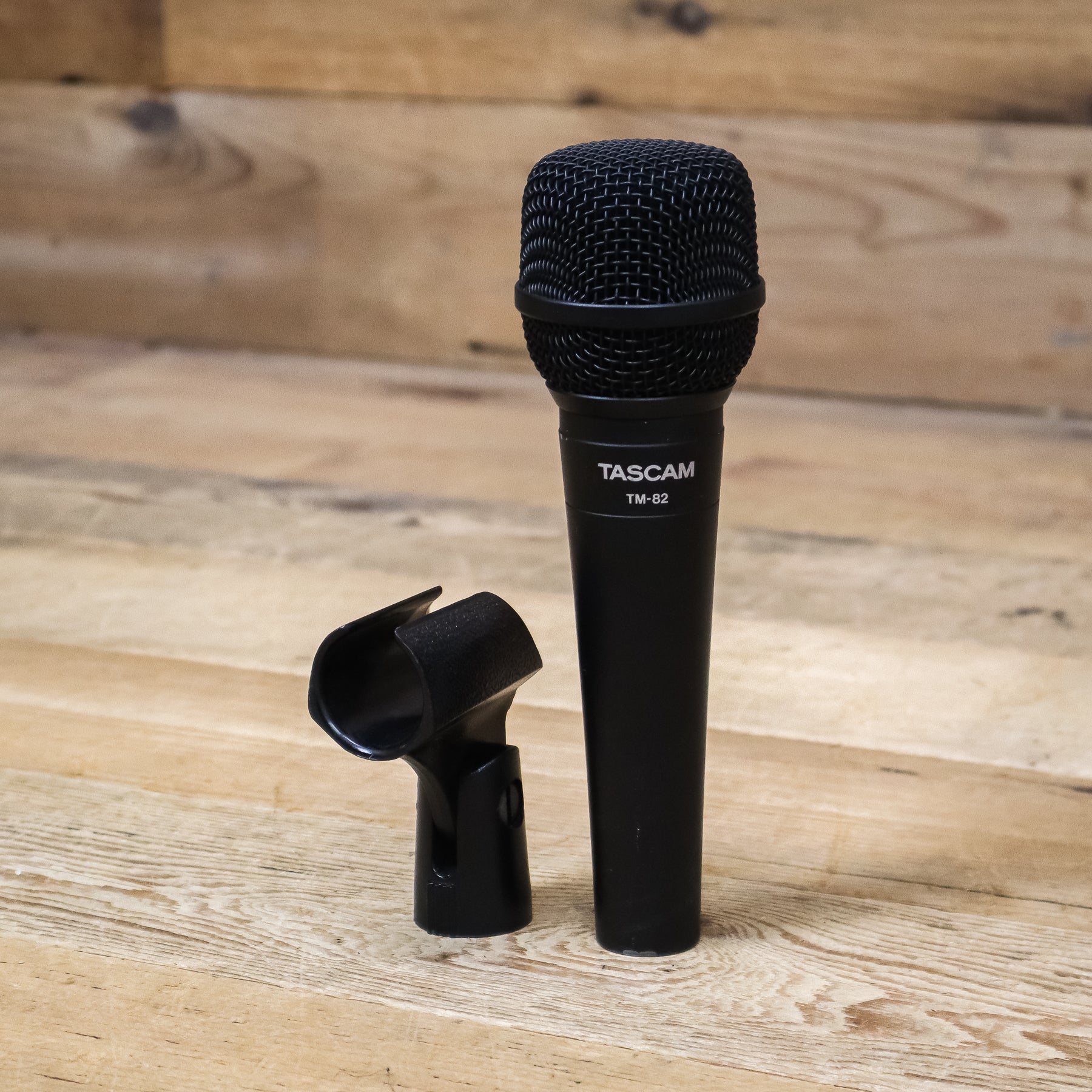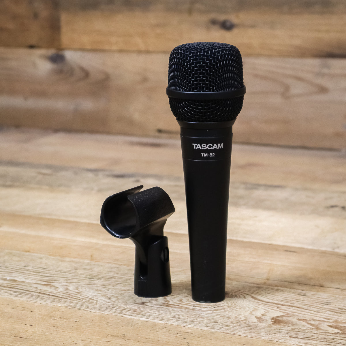 This used Tascam TM-82 Dynamic Microphone comes with a Mic Clip.