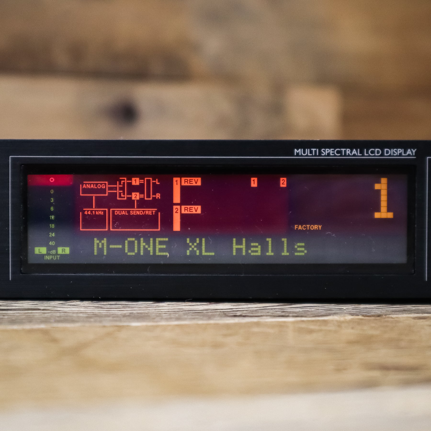 M-One XL is a dual effects unit, perfectly designed for LIVE applications. The reverbs truly shine, but it also features lots of other pristine effects such as Compressor, Chorus, Delay, Gate, etc. The essence of the M-One XL, the XL Technology, is based on TC's heritage and continual research and development of Reverb technology. XL Reverbs feature new and improved spatial perspectives, across the entire range of Reverb algorithms. The extended range of the "reverb size" enables extremely wide or narrow spatial imaging, independently of the decay time. By applying "Reverb size" to both Early Reflections and the Diffused field, the M-One XL achieves any combination from wide spaces with short decay times, to narrow rooms with long decays. The XL Technology also stands out by applying sophisticated modulation patterns, simulating the modulation of a real room and allowing ranges of modulation from the barely audible real-room modulation to the heavy chorusing and detuning reverbs, also simulating the vintage style of reverbs. In short, you will get a natural and clear result that no other processor in this price range is able to provide. Simulations of small rooms have been a major focus in the tuning of the XL Reverbs. The Early Reflection patterns combined with the new set of Diffused Fields, allows for realistic simulations of real rooms. If you apply it to source material, the room simulations will bring clarity and presence to the source. With the flexibility of the XL Technology, you can tweak the reverbs from virtually transparent Ambience to patterns over a large Hall Reverbs to low-resolution Plates or Spring reverbs with ease. M-One XL offers you all the great types of reverb you need for live performances or in the studio. Depending on the application, you can go for Live, Hall, Room or Plate. M-One XL comes with 200 high-grade Factory Presets, covering any application imaginable. On top of that, M-One XL stores up to 100 of your favorite presets in the User Bank. When you are satisfied with your preset, just hit the STORE key to save. It is so simple, that you almost forget you are actually making presets!