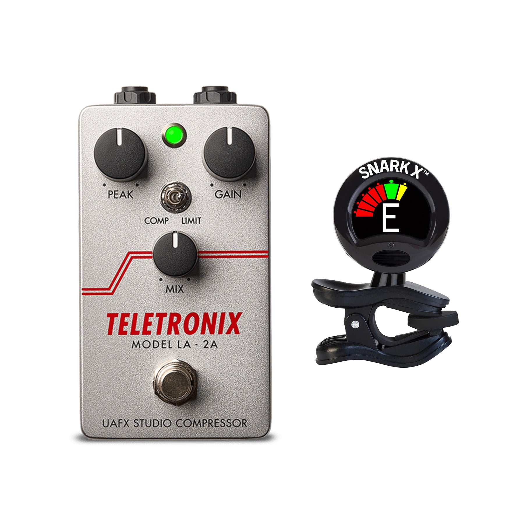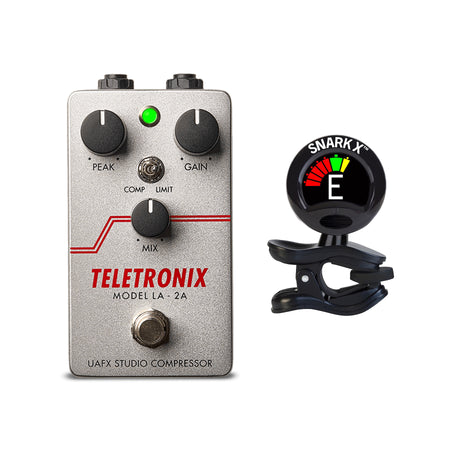 Save $19.99 with this exclusive bundle from Pixel Pro Audio. This bundle includes the Universal Audio UAFX Teletronix LA-2A Studio Compressor Guitar Effects Pedal and a Snark X Clip-On Tuner.