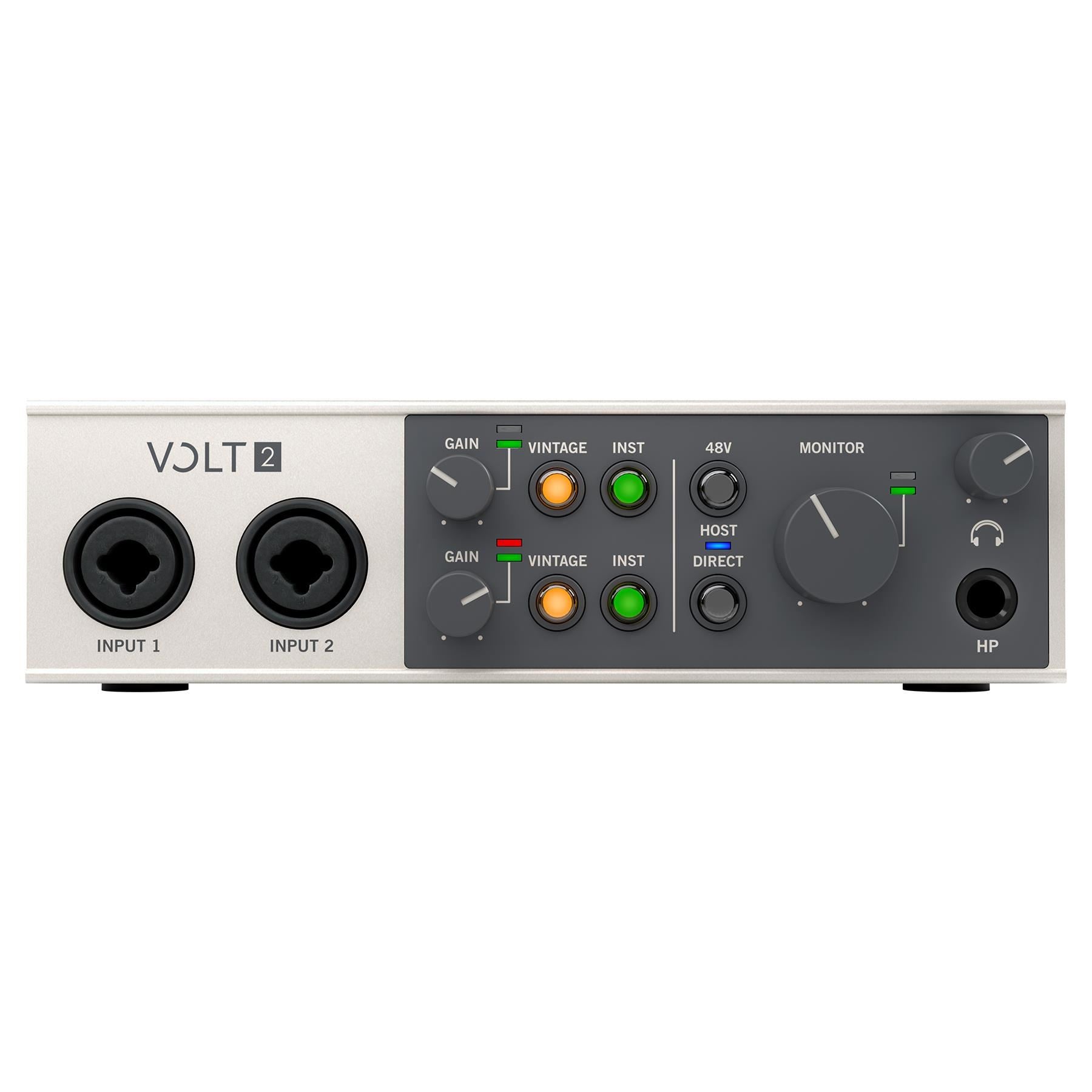 Universal Audio created Volt 2 for collaborators - from musicians and songwriters to live streamers and podcasters. This portable 2-in/2-out USB recording interface for Mac, PC, iPad, and iPhone gives you superior sound quality, a Vintage Mic Preamp mode derived from UA's 610 tube preamp, plus a suite of industry-leading music software - so your next recording will sound classic. From the team that brought you the game-changing Apollo interface, Volt 2 delivers superior studio sound quality, with more character and tone than any USB interface in its class. Few sounds can compare to a vintage Universal Audio 610 tube preamp, as used to record everyone from Ray Charles to Van Halen. Volt 2 gives you the rich, full sound of this classic UA mic/line/instrument preamp, thanks to its built-in tube emulation circuitry, a UA exclusive. Some audio interfaces give you a smattering of random audio apps. Not Volt. Instead, UA put together a bundle of serious music production tools, virtual instruments, and plug-ins including Ableton, Melodyne, UJAM's Virtual Drummer, Marshall, Ampeg, and more. Volt 2 gives you simple 2-in/2-out audio connections. Just plug your mics, guitars, or synths into the front panel. Then connect your speakers or headphones to monitor your audio with no latency. With Volt, you'll be creating like a pro, fast. Traveling light? Plug Volt 2 into your iPad or iPhone, and you can easily create beats and samples, record your band's rehearsals, and edit songs anywhere. Volt 2 users get an extended 30-day free trial to UAD Spark, an ever-expanding library of world-class plug-ins and instruments for a low monthly price. UAD Spark plug-ins run natively on Mac and will give your recordings the pro analog tones heard on your favorite albums. Featuring rugged all-metal construction and sleek, vintage-inspired industrial design, Volt 2 elevates your production space with impeccable style, built to last decades.