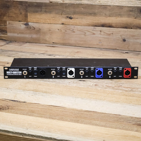 The Whirlwind MultiDirector rackmountable 4-channel direct box converts an unbalanced line, instrument, or speaker signal to a low-impedance balanced level. The Whirlwind MultiDirector features 1/4" parallel wired in/out jacks, as well as a ground lift switch to help eliminate buzz and hum. A 30dB pad switch is also onboard to let you work with speaker-level signals, as well as line-level signals, and a very useful high-cut filter switch cuts down on amplifier noise when engaged. This 4-channel DI uses Whirlwind's TRHL-M transformer with a metal shield, so you know you'll get top-quality performance from the Whirlwind MultiDirector.