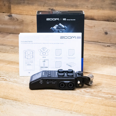 This used Zoom H6 All Black Handy Recorder comes with the XY Capsule, Manual, and the Original Box.
