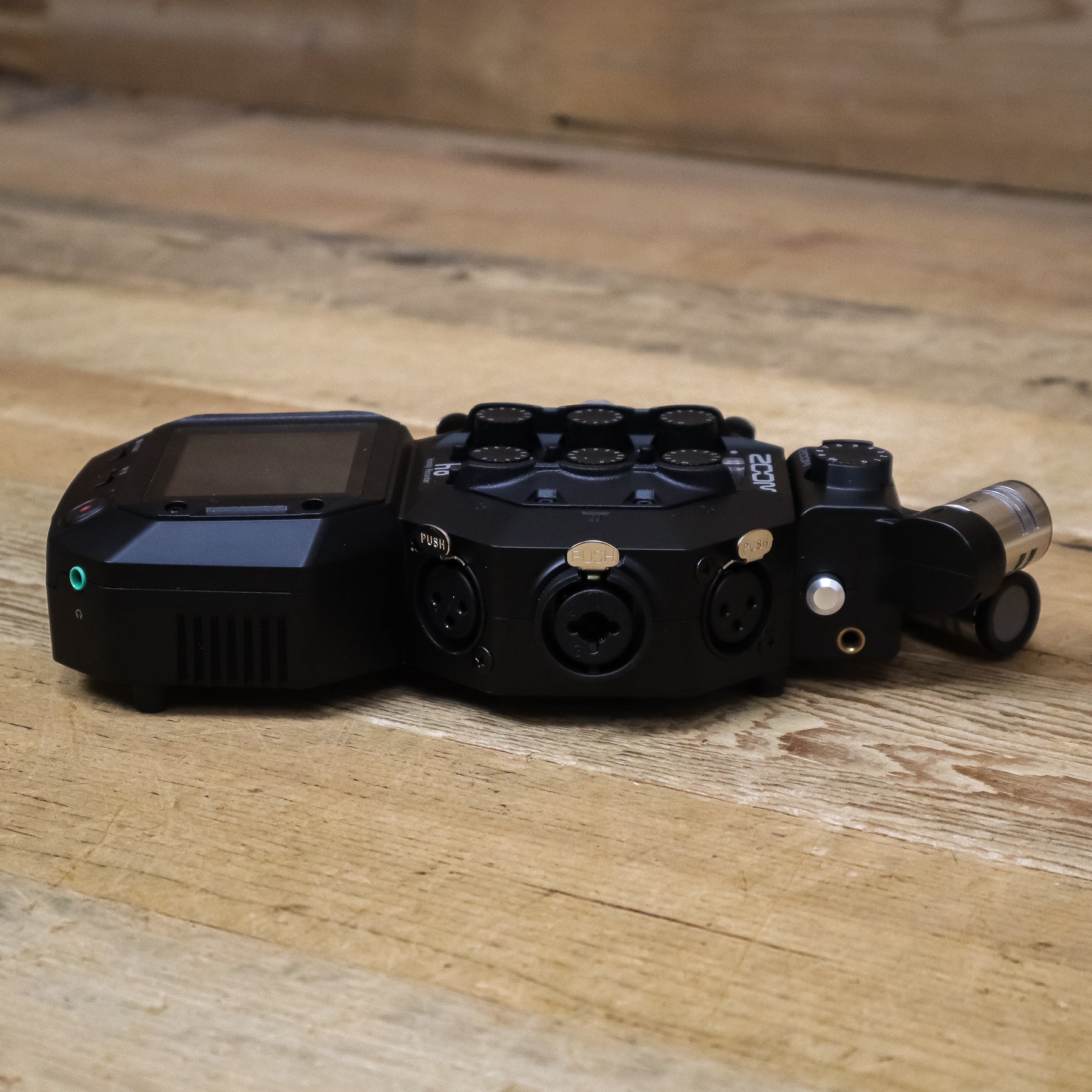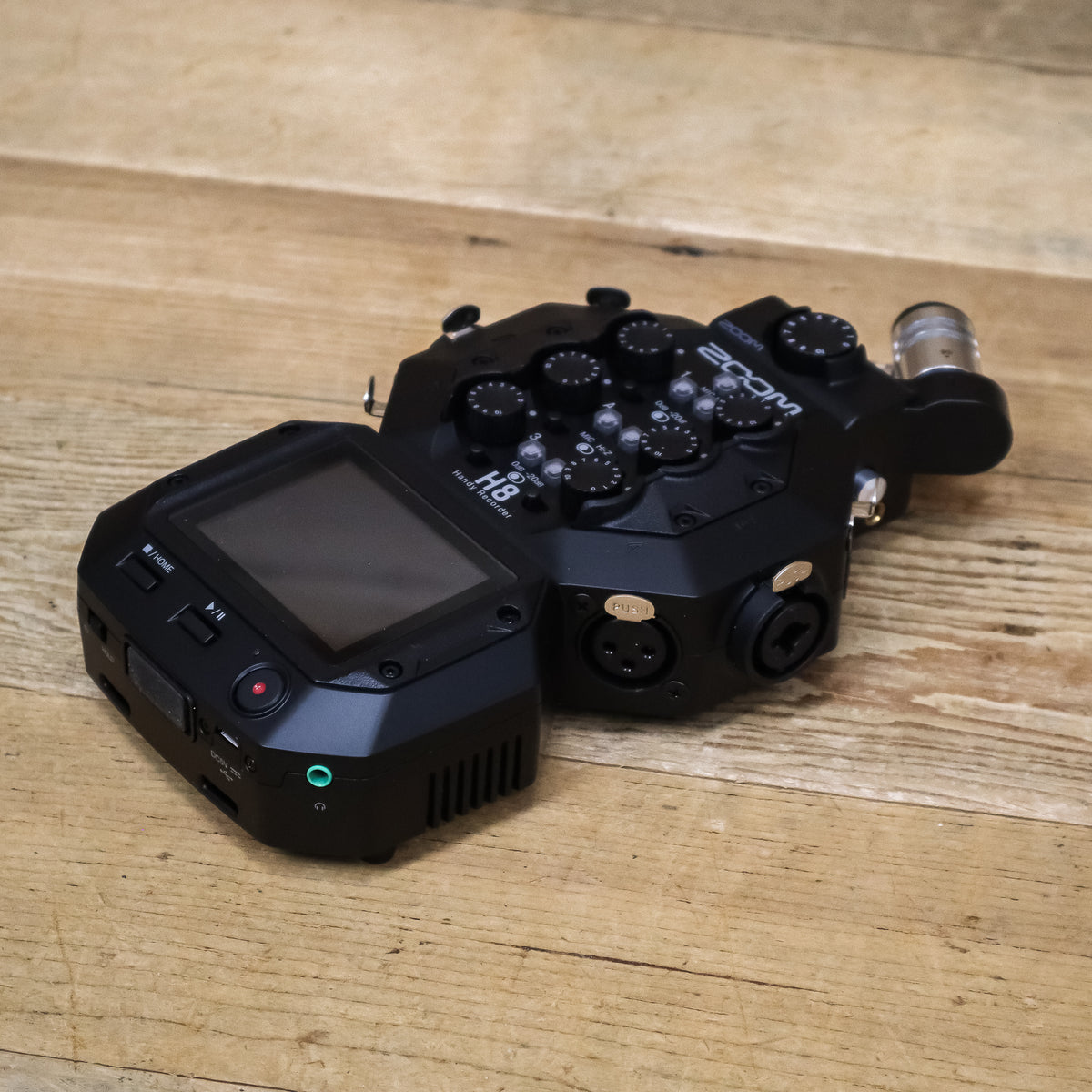 The H8 comes with the Zoom XYH-6 microphone. This capsule provides two matched high-quality unidirectional mics, for capturing signal directly in front of the recorder. With the Zoom mic capsule system you can easily swap capsules to ensure you're always using the right mic for the job.