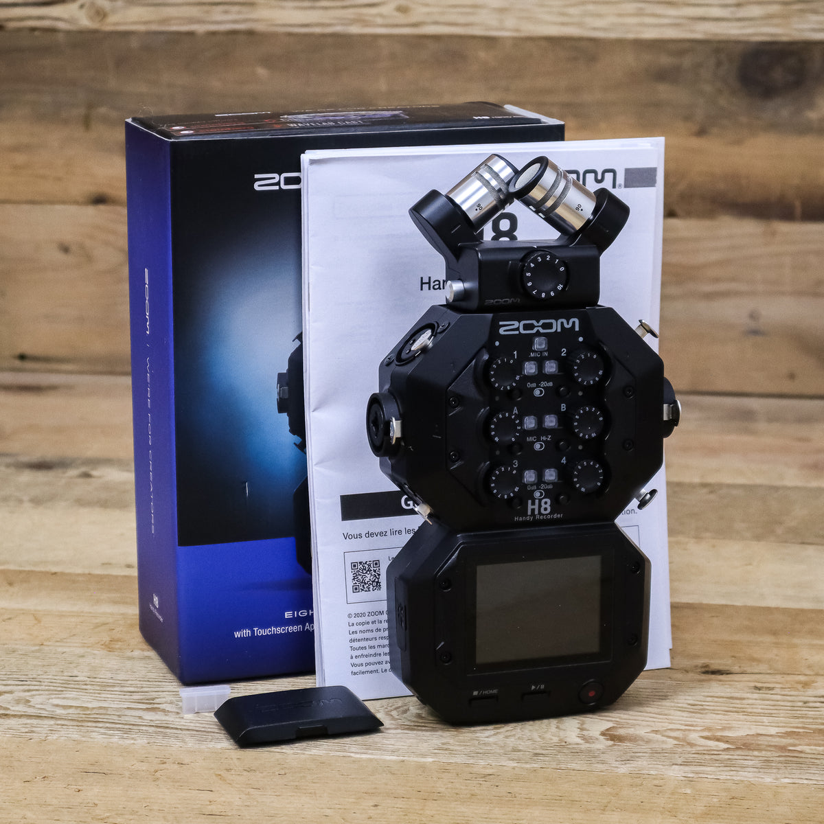 This used Zoom H8 Handy Recorder comes with the XY Capsule, Original Box, and the Manual.