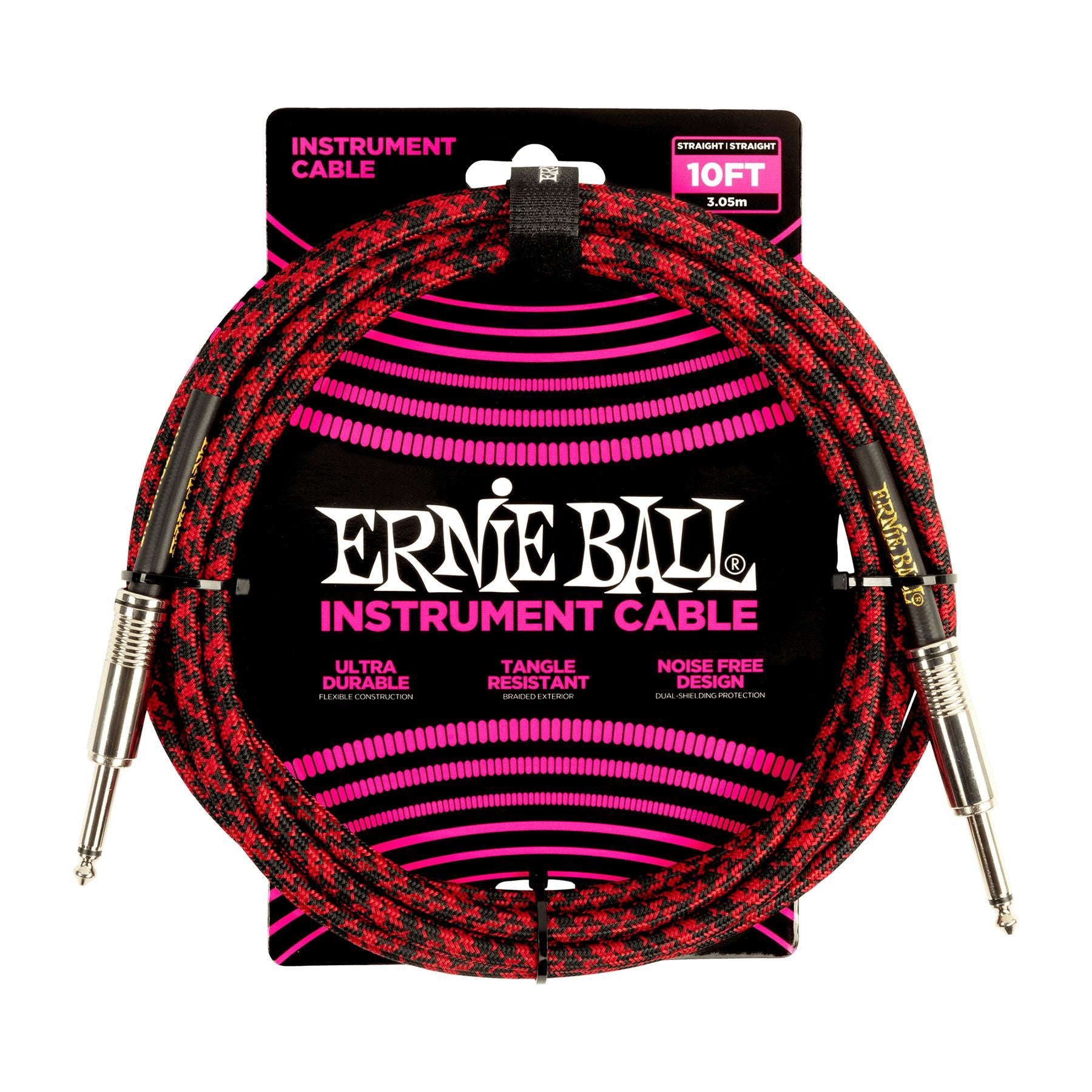 Ernie Ball P06394 10-foot Red/Black Braided 1/4" TS Instrument Cable Straight/Straight